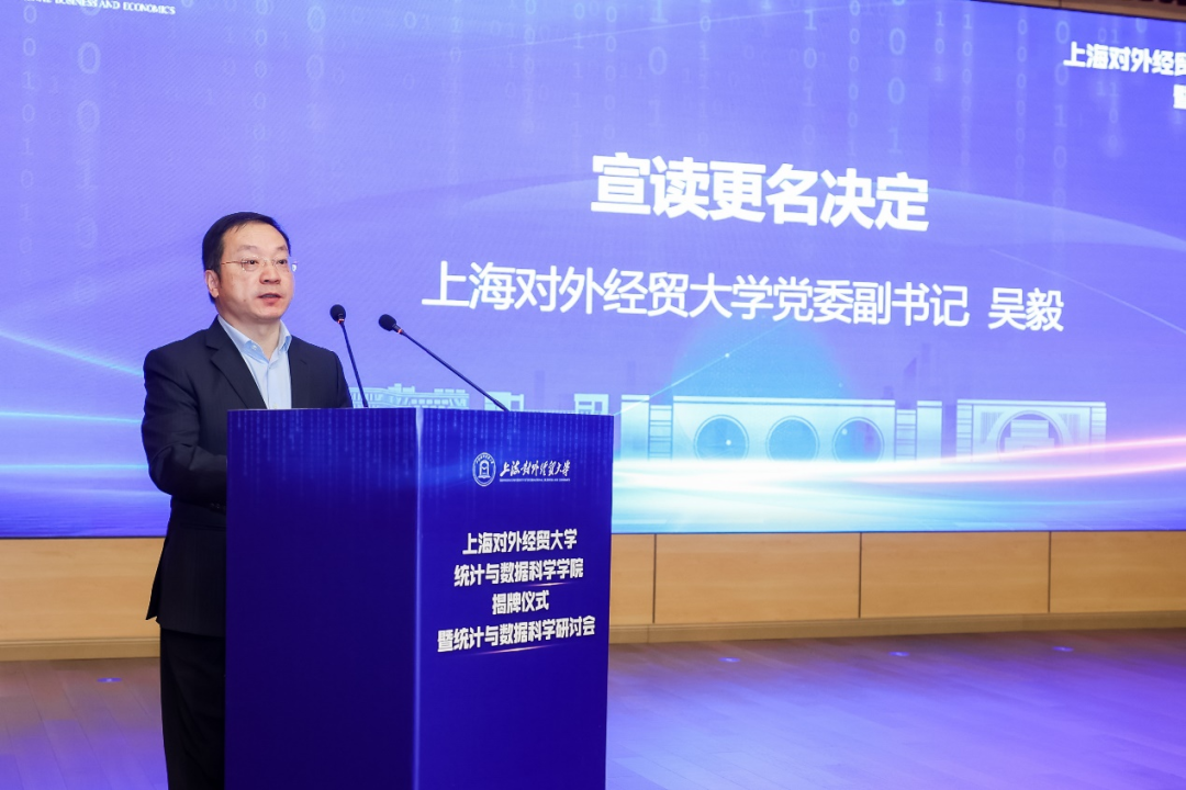 会上,吴毅宣读了上海对外经贸大学统计与数据科学学院更名决定。