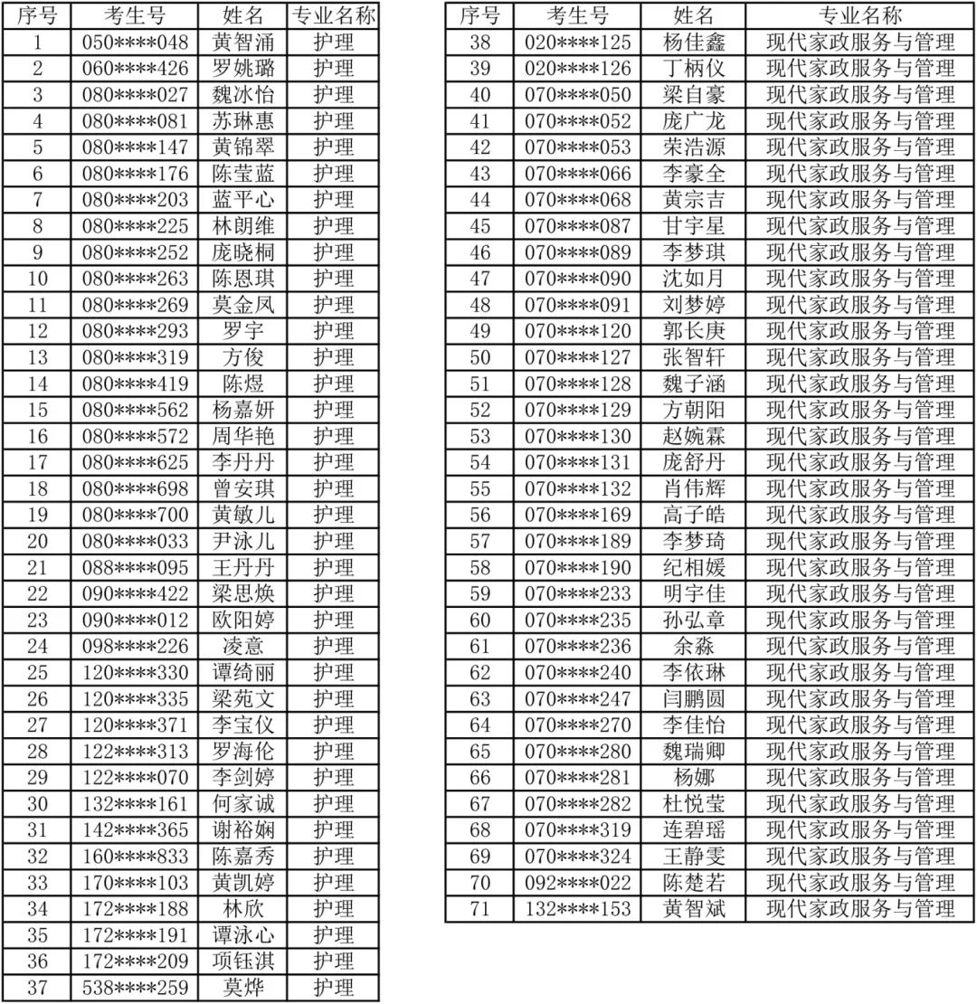 根据《广东省教育厅 广东省退役军人事务厅关于做好2025年高等职业院校自主招生工作的通知》(粤教考函〔2025〕11号)文件精神,我校已通过高职自主招生网上报名系统完成2025年普通现代学徒制试点考生资格审核工作,现公布获得报考资格的考生名单如下: