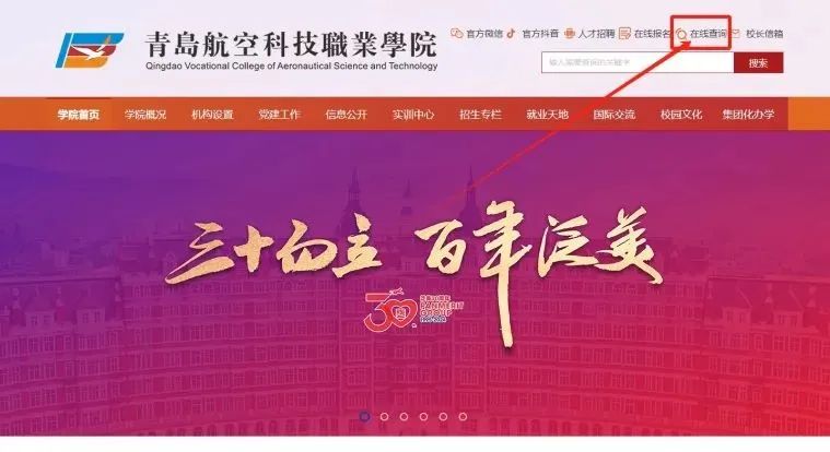 登录青岛航空科技职业学院官网https://www.qdhkxy.com/query.html点击“在线查询”;