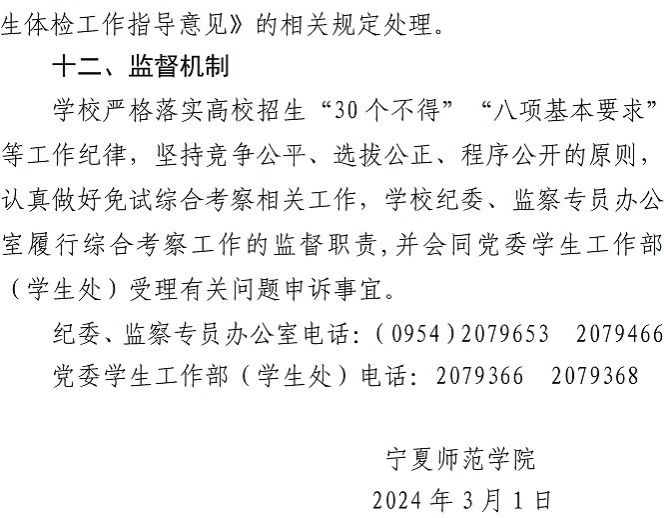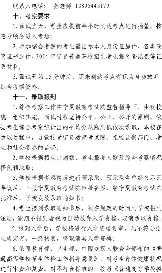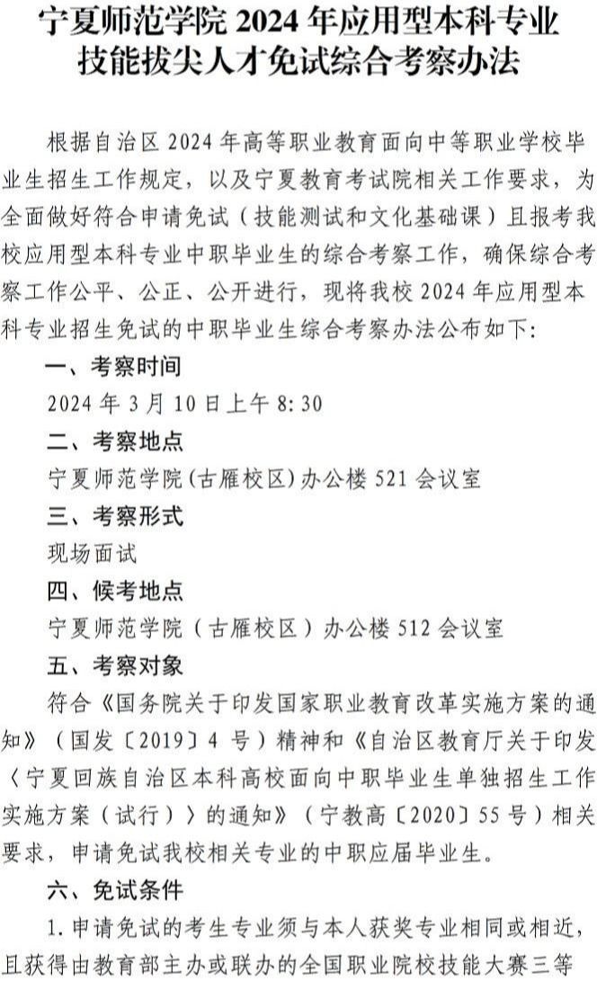 宁夏师范学院2024年应用型本科专业技能拔尖人才免试综合考察办法
