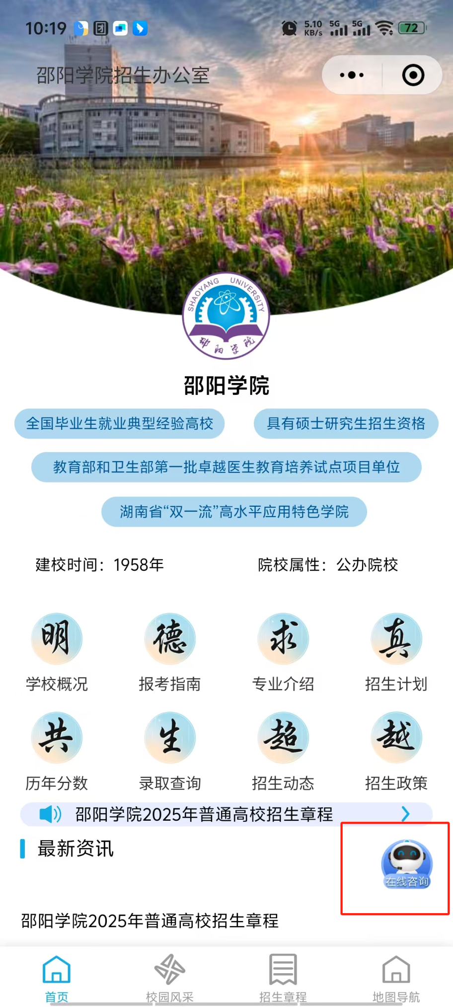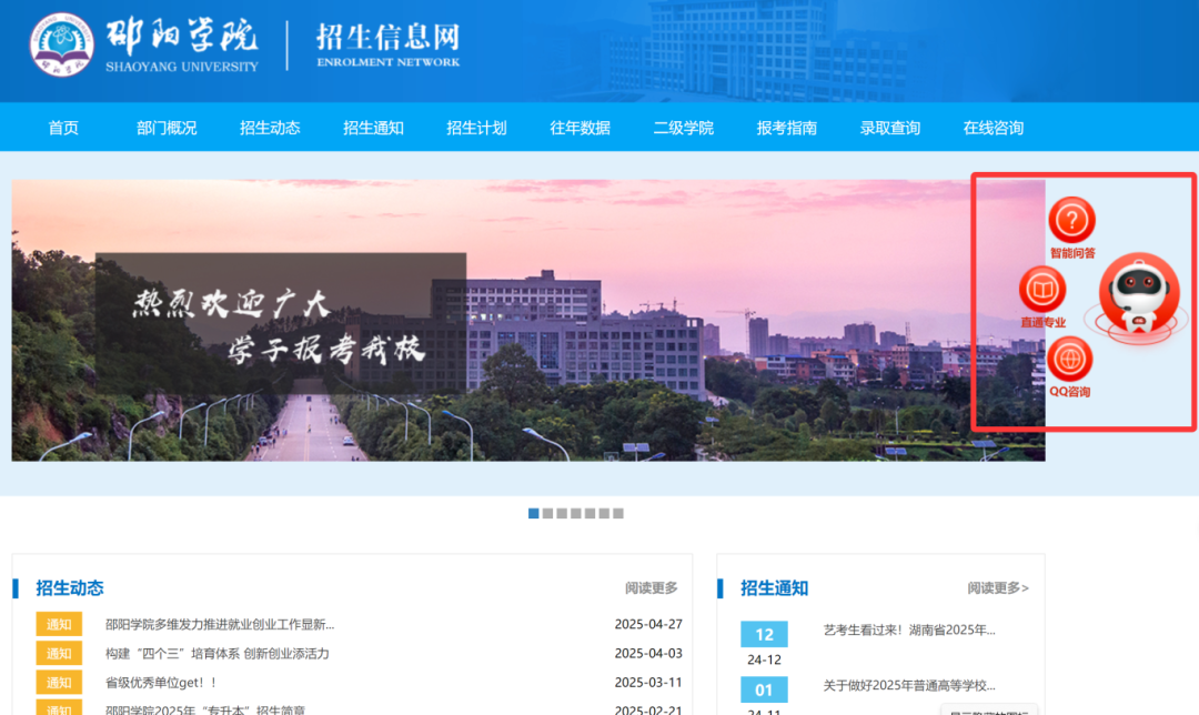 各位学子及家长可通过邵阳学院招生官网和本科招生小程序三种方式进行在线咨询。