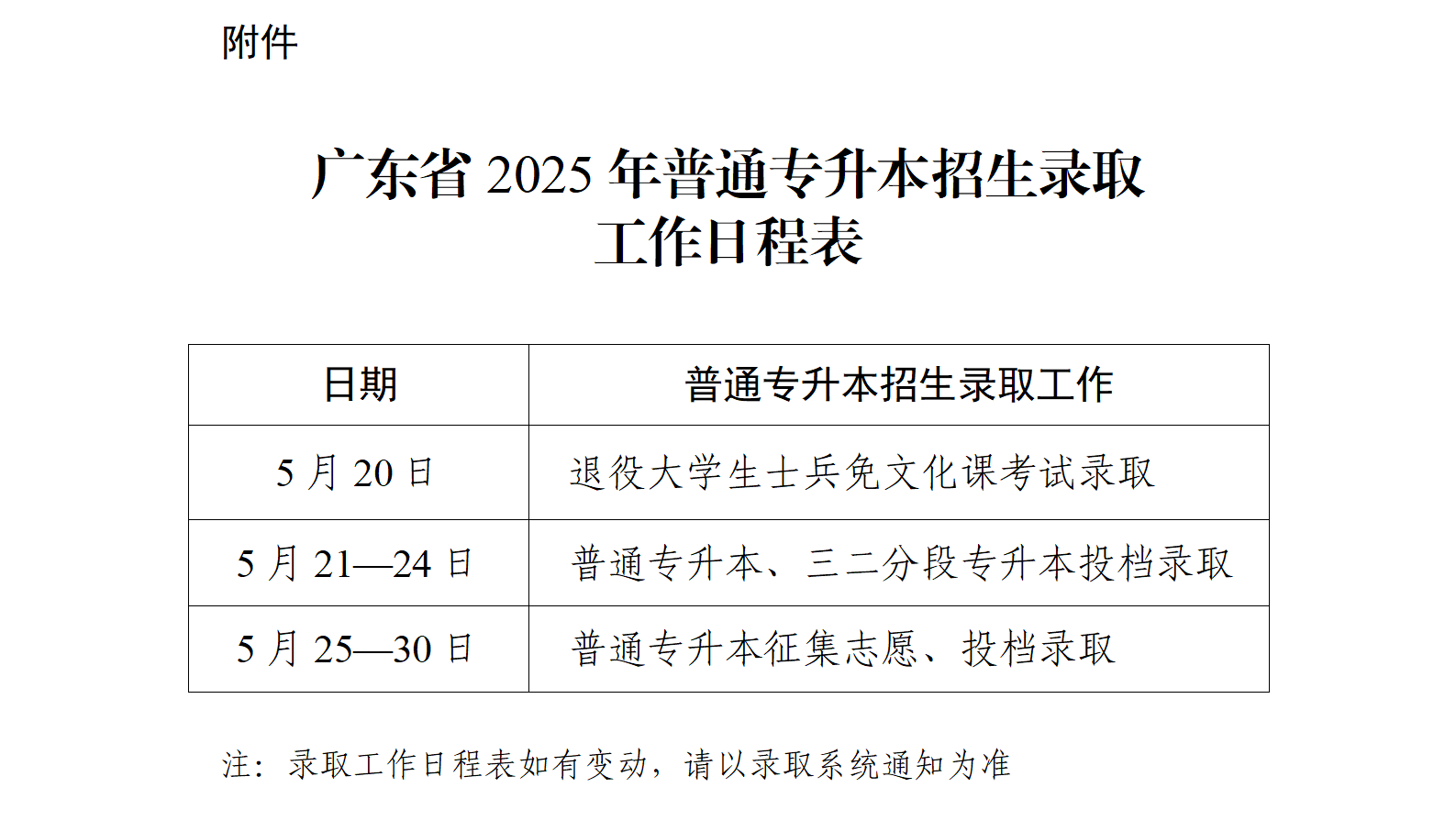 附件:广东省2025年普通专升本招生录取工作日程表