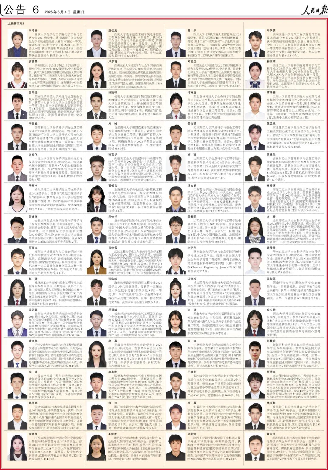 《人民日报》刊登本专科国家奖学金代表,高泽涛为第四列第八个