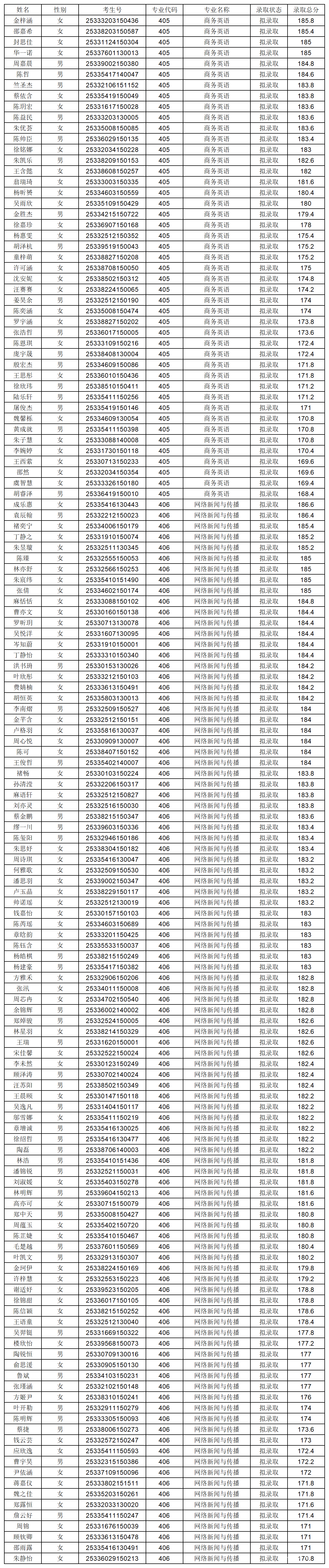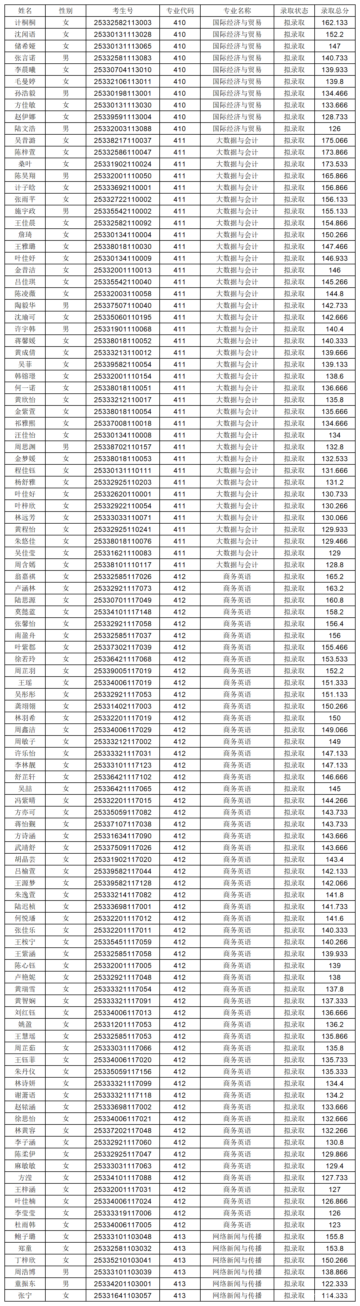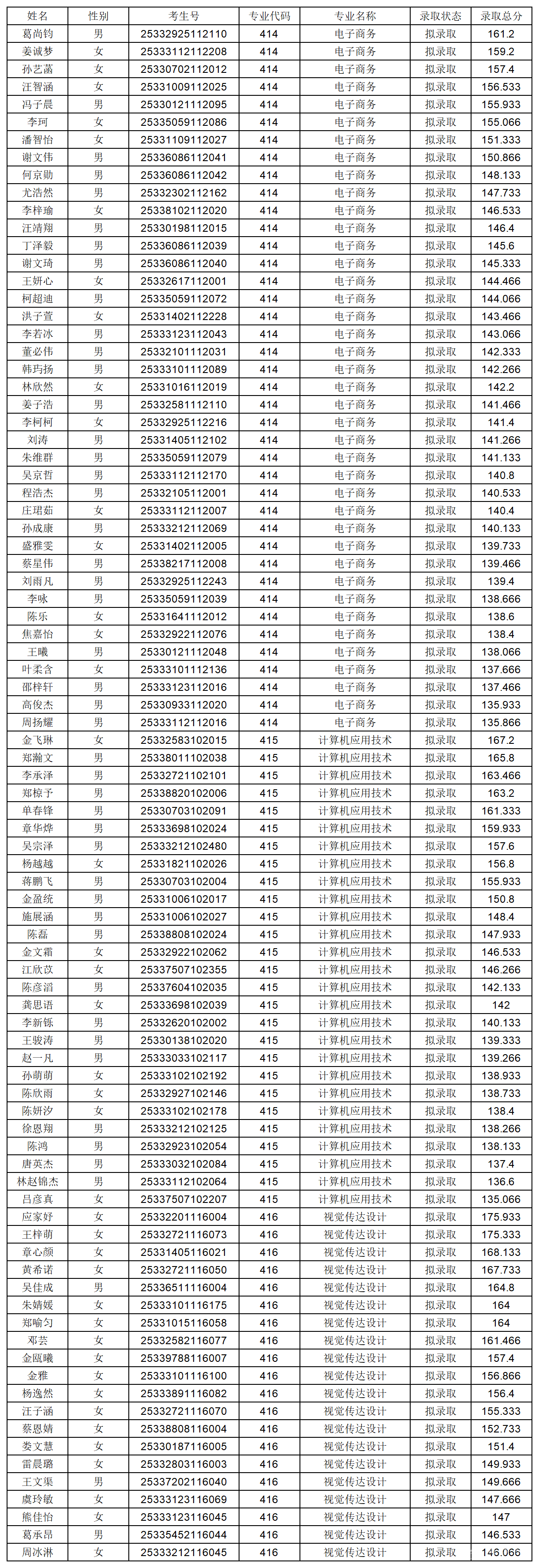 根据浙江省教育考试院《浙江省高职提前招生试点管理暂行办法》及《温州商学院2025年高职提前招生章程》等文件精神,我校2025年高职提前招生工作在纪检部门和社会的监督下,已完成各环节工作。根据工作进程,现将我校2025年高职提前招生录取考生名单予以公示,并将有关事项通告如下: