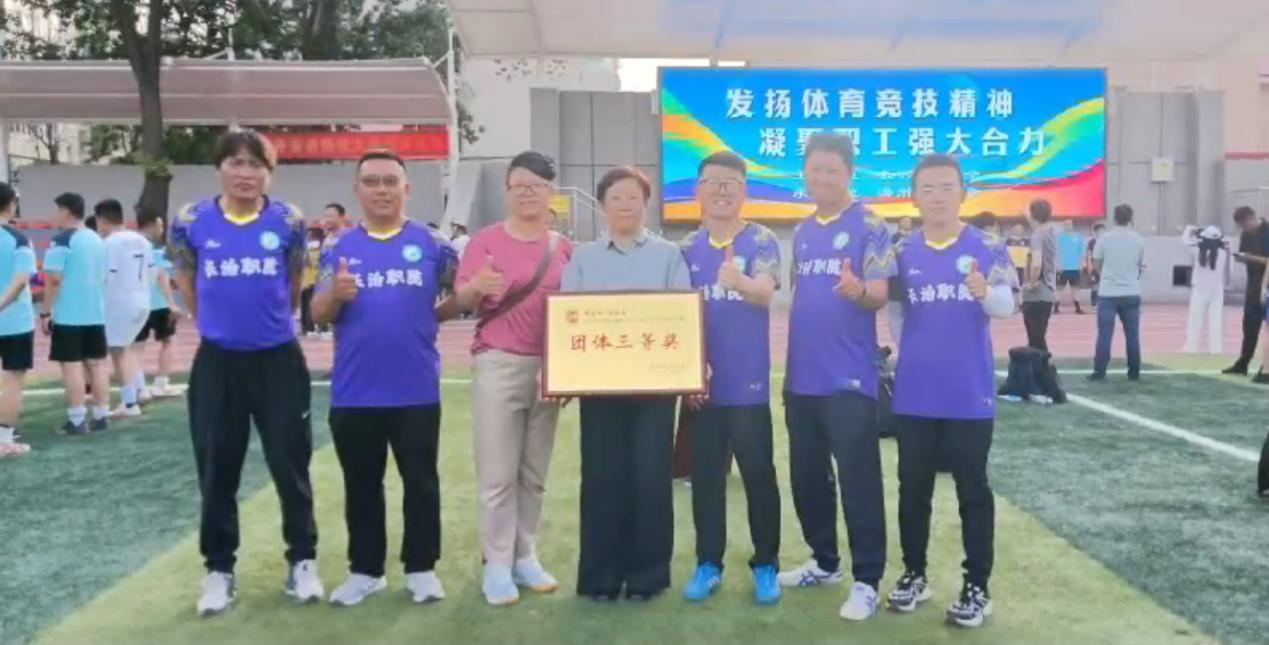 在刚刚落幕的2025年全市职工五人制足球赛中,我院教职工足球队团结一心、奋勇拼搏,从26支市直参赛队伍中脱颖而出,获得市直组第五名!我院是全市所有参赛学校中唯一挺进前八强的单位,充分展现了我院教职工昂扬向上的精神风貌和顽强拼搏的体育风采!