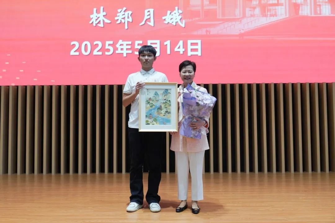 活动现场,学生代表向林郑月娥女士赠送由我校建筑与设计学院师生利用AI技术绘制的“赣州八景图”,展现赣州古城文化底蕴与科技融合的创新实践,对林郑月娥女士的精彩报告致以真挚的感谢。