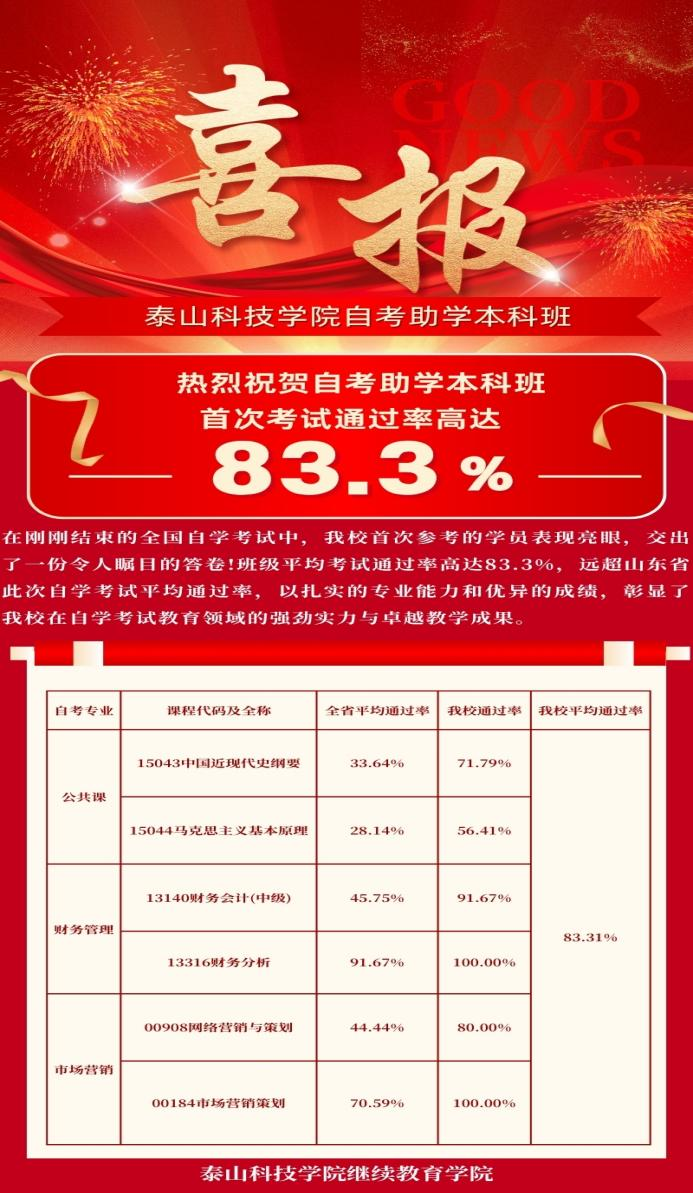 本次考试涉及《中国近现代史纲要》、《马克思主义基本原理》、《财务会计》、《财务分析》等6个专业课程,其中《财务分析》《市场营销策划》通过率达100%,整体考试通过率达83.3%,远超全省平均水平。