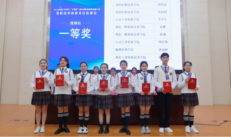 2023年周思雨、肖向国、潘慧轩、汪紫瑛参加湖北省职业院校技能大赛学前教育技能赛项获得一等奖4个;