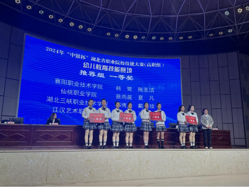 2024年韩鹭、陈圣洁、刘雷蕾、邹丽娟参加湖北省职业院校技能大赛幼儿教育技能赛项分获推荐队、抽测队团体一等奖。