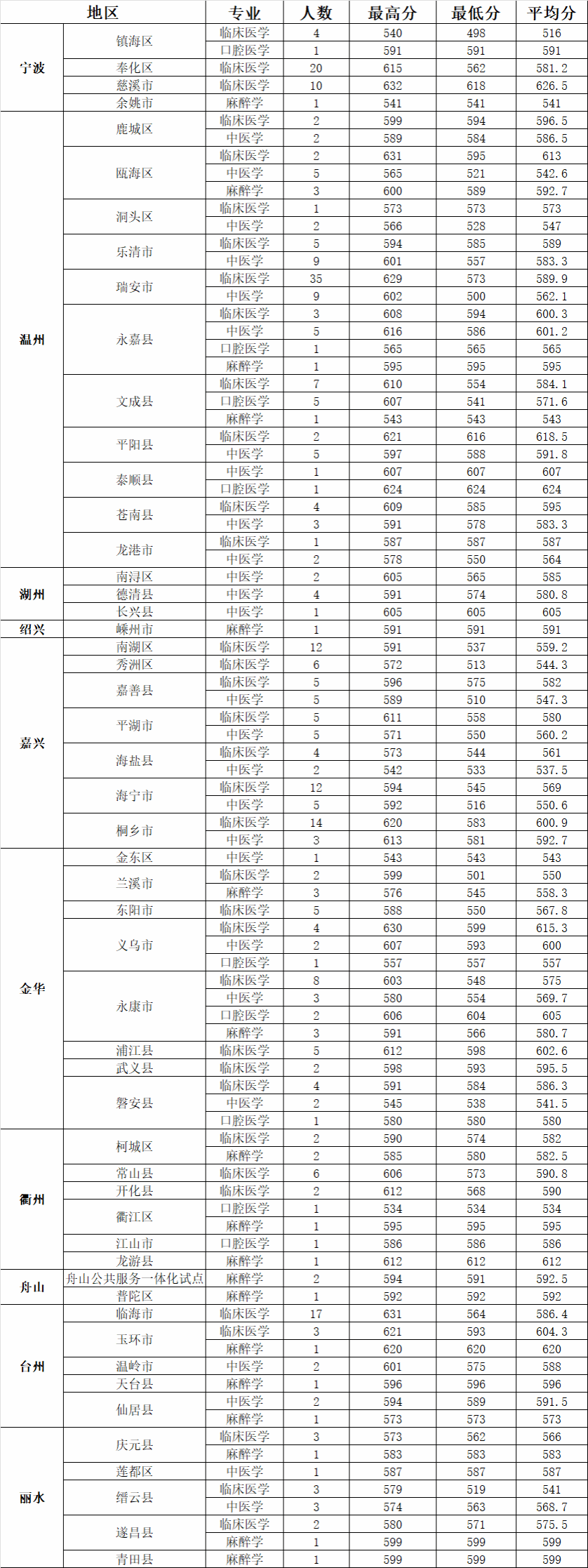 2024年浙江省定向各地区录取情况
