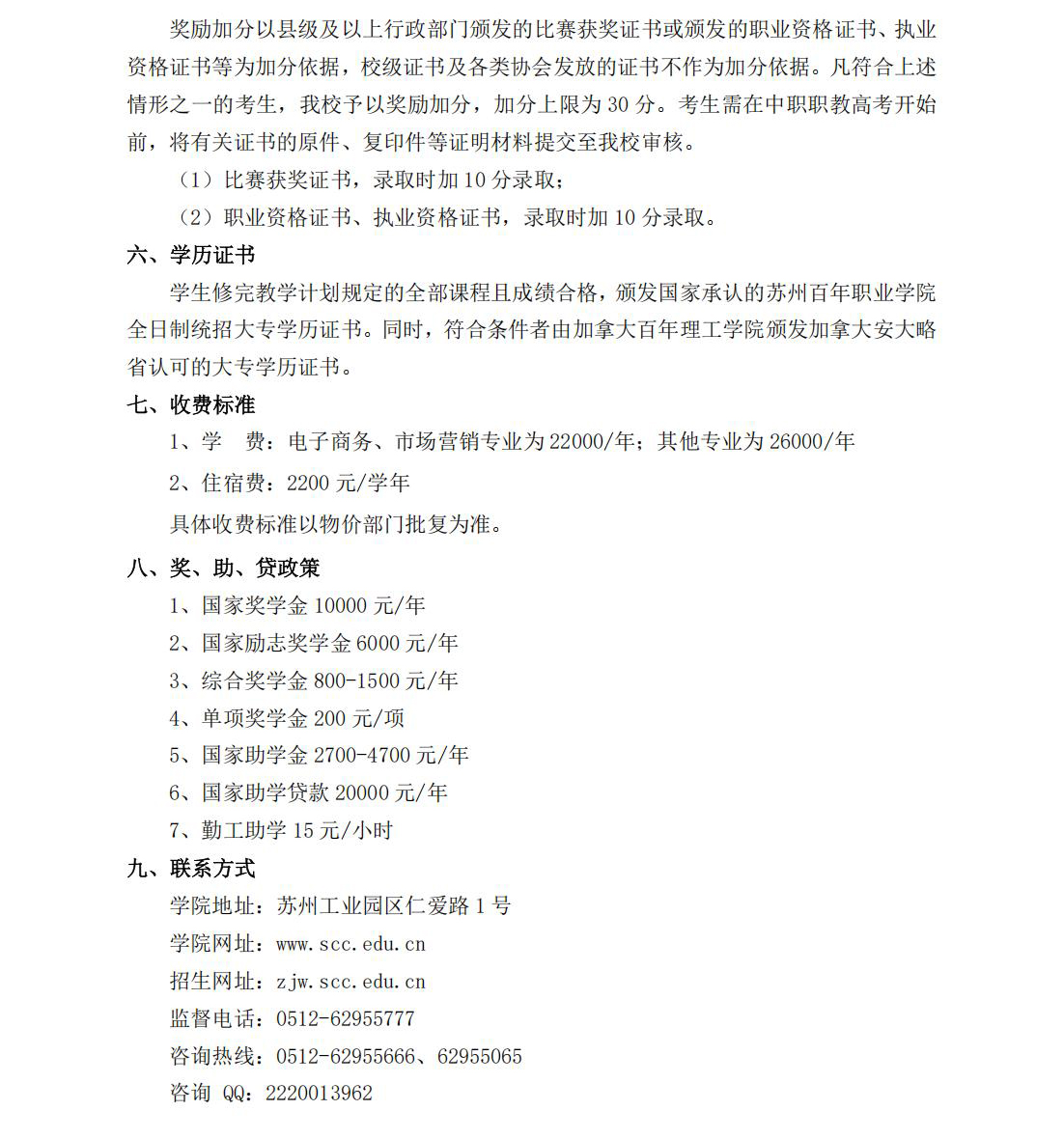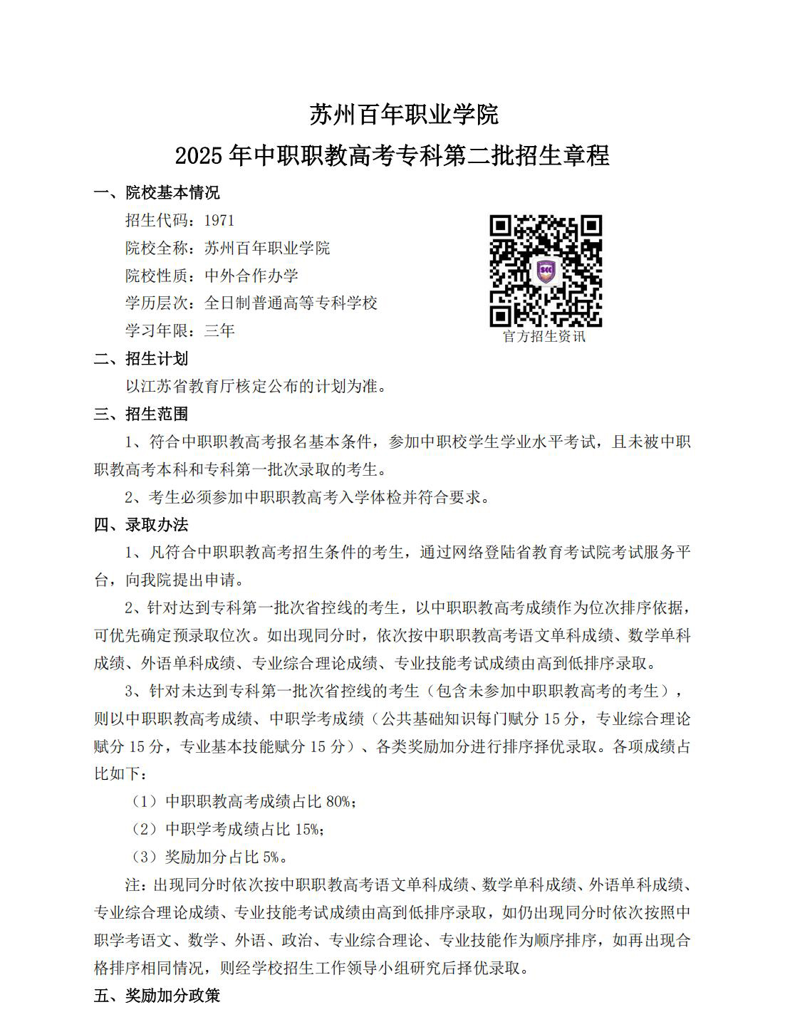 苏州百年职业学院 2025年中职职教高考专科第二批招生章程