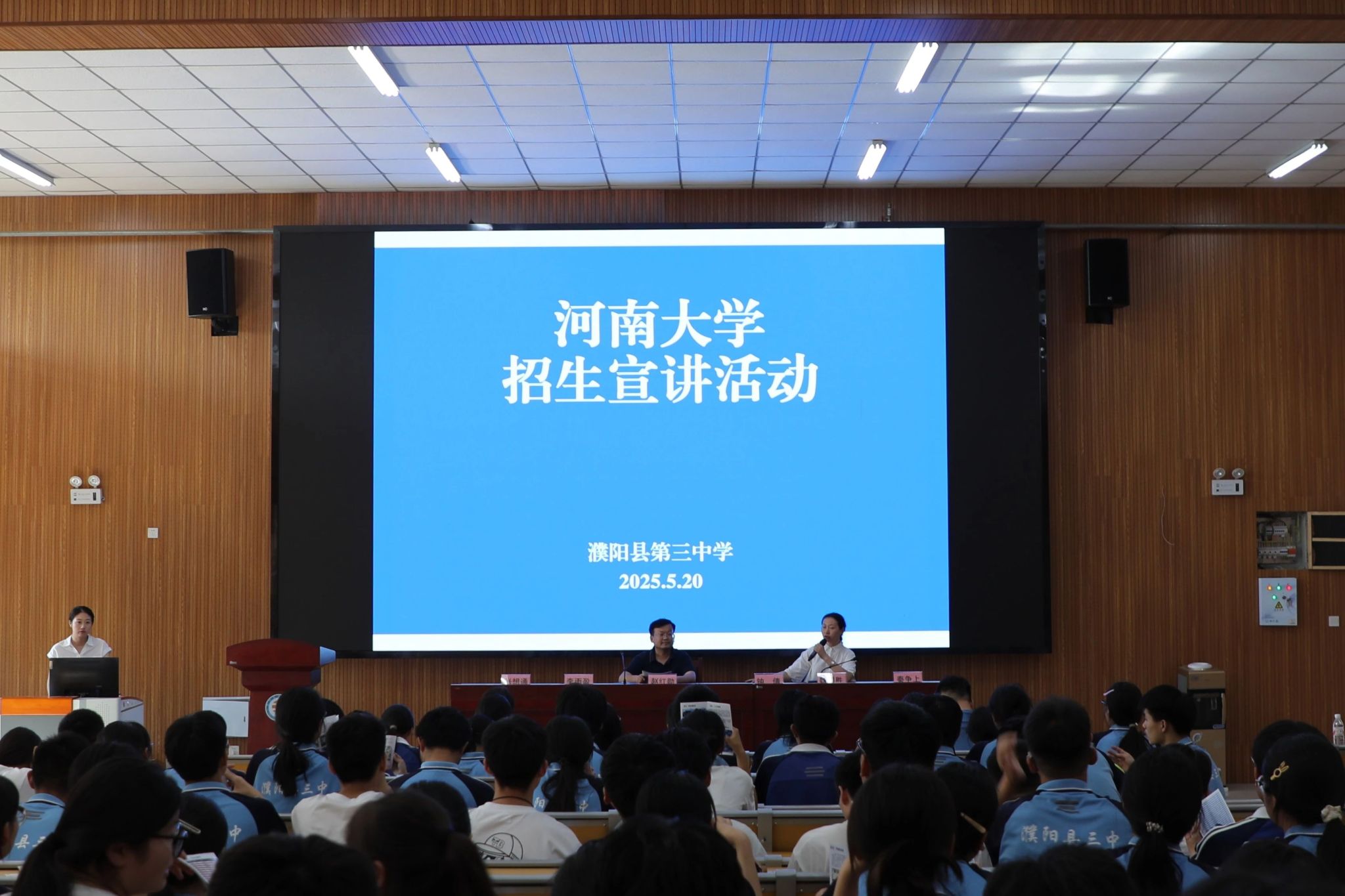 为精准对接考生升学需求,深化高校与中学人才培养联动机制,5月20日,我院院长助理、新闻系主任赵红勋,播音与主持艺术系主任钟倩,团委书记李雨盈,纳米科学与材料工程学院教师张想通一行赴濮阳县第一中学和濮阳县第三中学开展招生宣讲活动。
