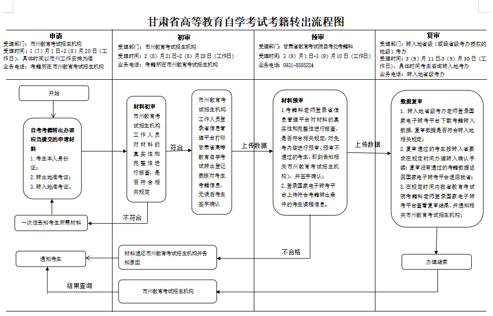 甘肃省高等教育自学考试考籍转出流程图