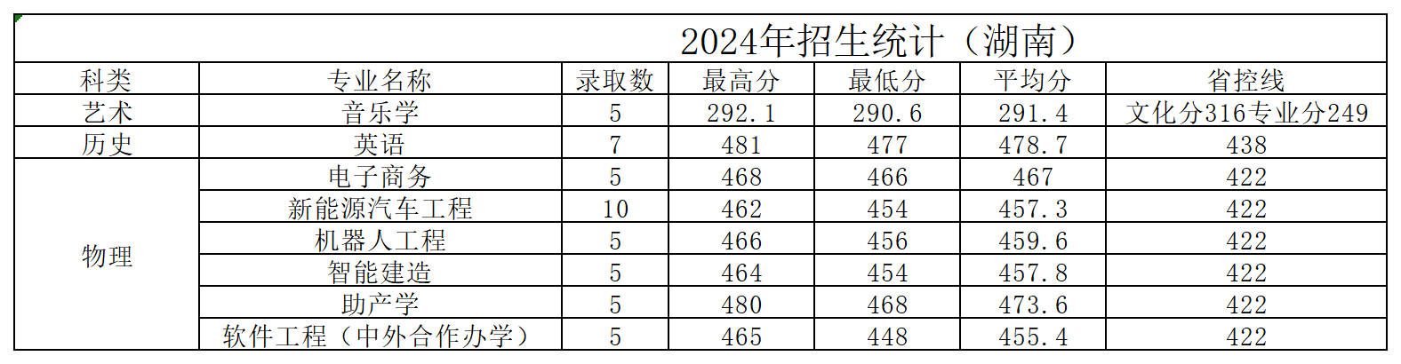 黄淮学院2024年湖南省招生录取统计