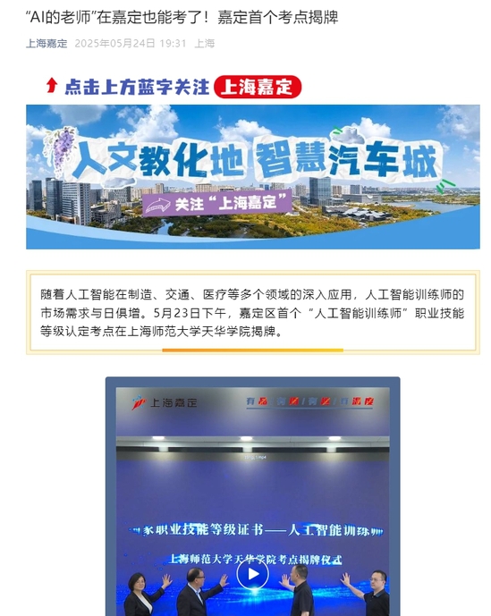 题目:“AI的老师”在嘉定也能考了!嘉定首个考点揭牌