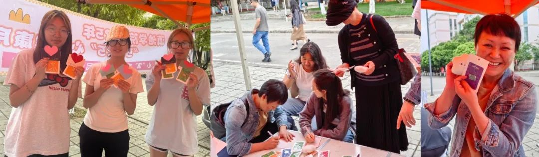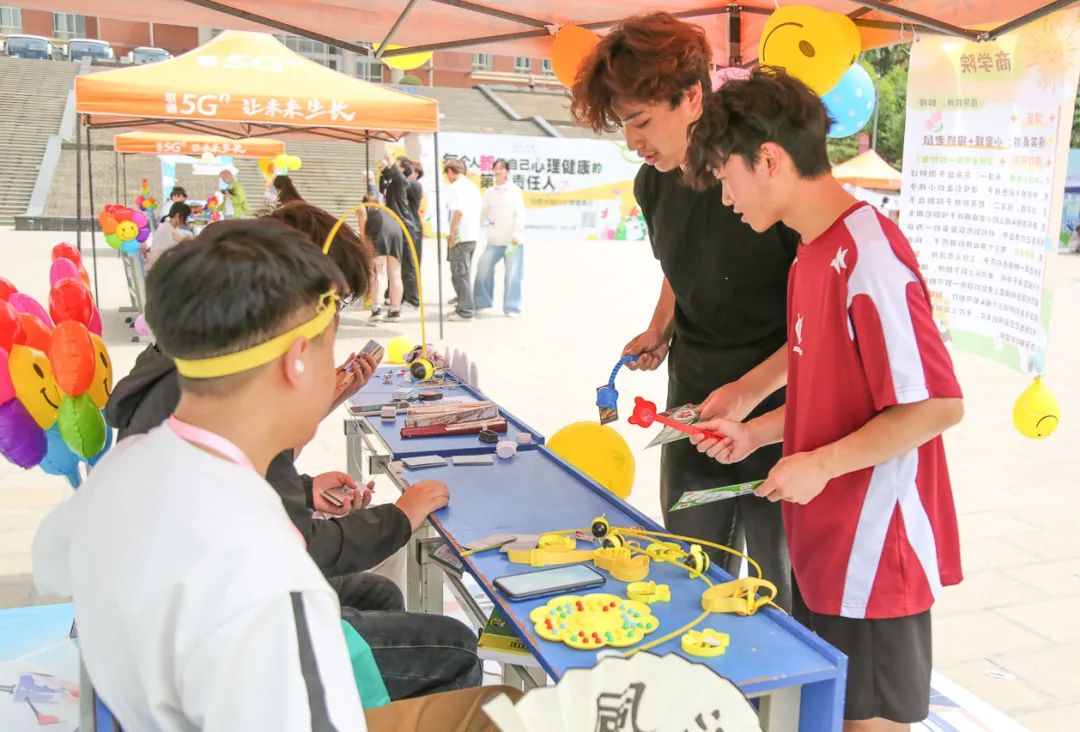 游园会现场琳琅满目,趣味心理游戏、文创制作、手卡拍照、AI互动等,每一个都充满了趣味性和互动性。师生们在轻松愉快的氛围中,深入了解心理健康知识,学会建立良好的人际关系,并掌握有效的情绪调节方法。