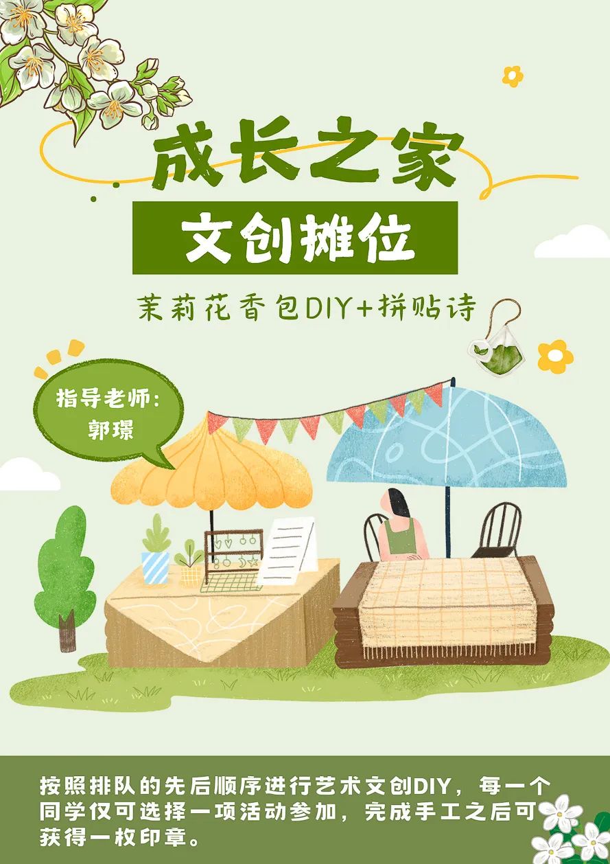大家在茉莉花香包DIY、拼贴诗创作等手工活动中大展身手,锻炼动手能力,释放压力,沉浸在传统文化魅力里,享受心灵手巧的乐趣。