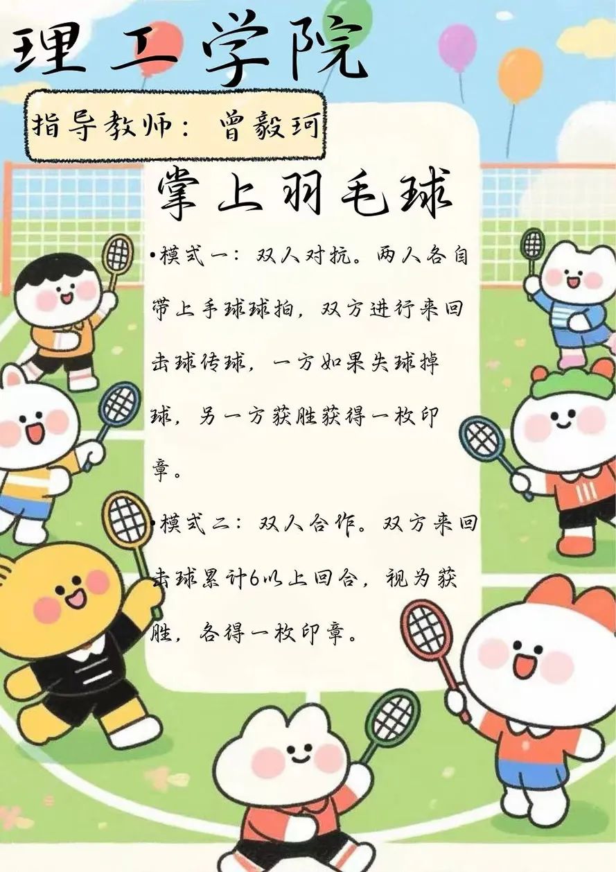 小巧灵活的掌上羽毛球,让同学们在击球中锻炼反应能力和身体协调性,尽情享受运动带来的快乐。