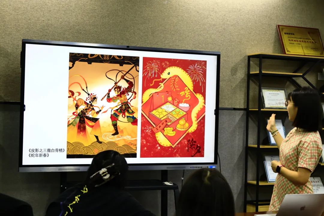 课程伊始,杨苏老师展示了几幅插画,这些插画凭借丰富的画面内容与多元的元素构成,充分展现出现代插画艺术的美感。杨苏老师提到,传统文化具有深厚底蕴,运用现代技术展现其魅力,呈现丰富的画面要素是一种文化传承,是一种文化创新。通过插画传播,促进文化交流,让世界了解中国文化,提升文化自信。