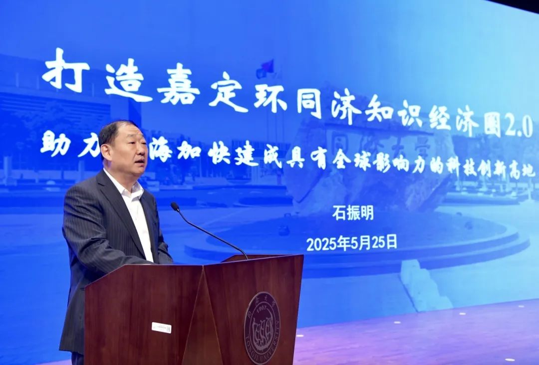 石振明作了题为《打造嘉定环同济知识经济圈2.0,助力上海加快建成具有全球影响力的科技创新高地》的报告。他表示,学校始终坚持“市场驱动、学科支撑、企业主体、政府引导”,深化“三区融合、联动发展”,科技园成为科技成果转化和创新创业服务的重要基地。面向未来,学校将通过“学科融合、机构融合、产教融合”三大融合举措,打造政-校-企共建共享共赢的协同创新生态。