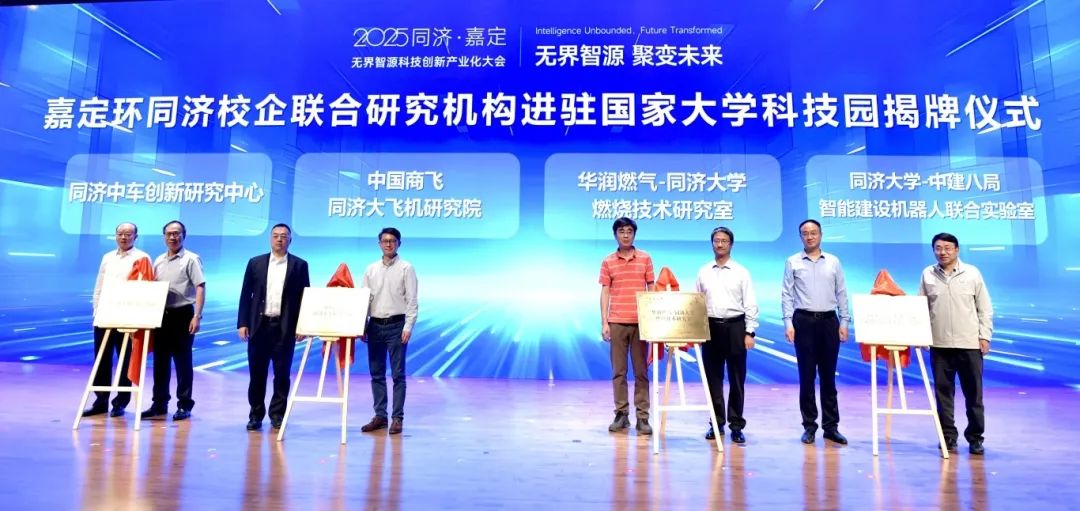 4家嘉定环同济校企联合研究机构进驻国家大学科技园揭牌,分别是同济中车创新研究中心、中国商飞-同济大飞机研究院、华润燃气-同济大学燃烧技术实验室、同济大学-中建八局智能建设机器人联合实验室。同济大学国家大学科技园将为联合研究机构提供物理空间和专业服务。