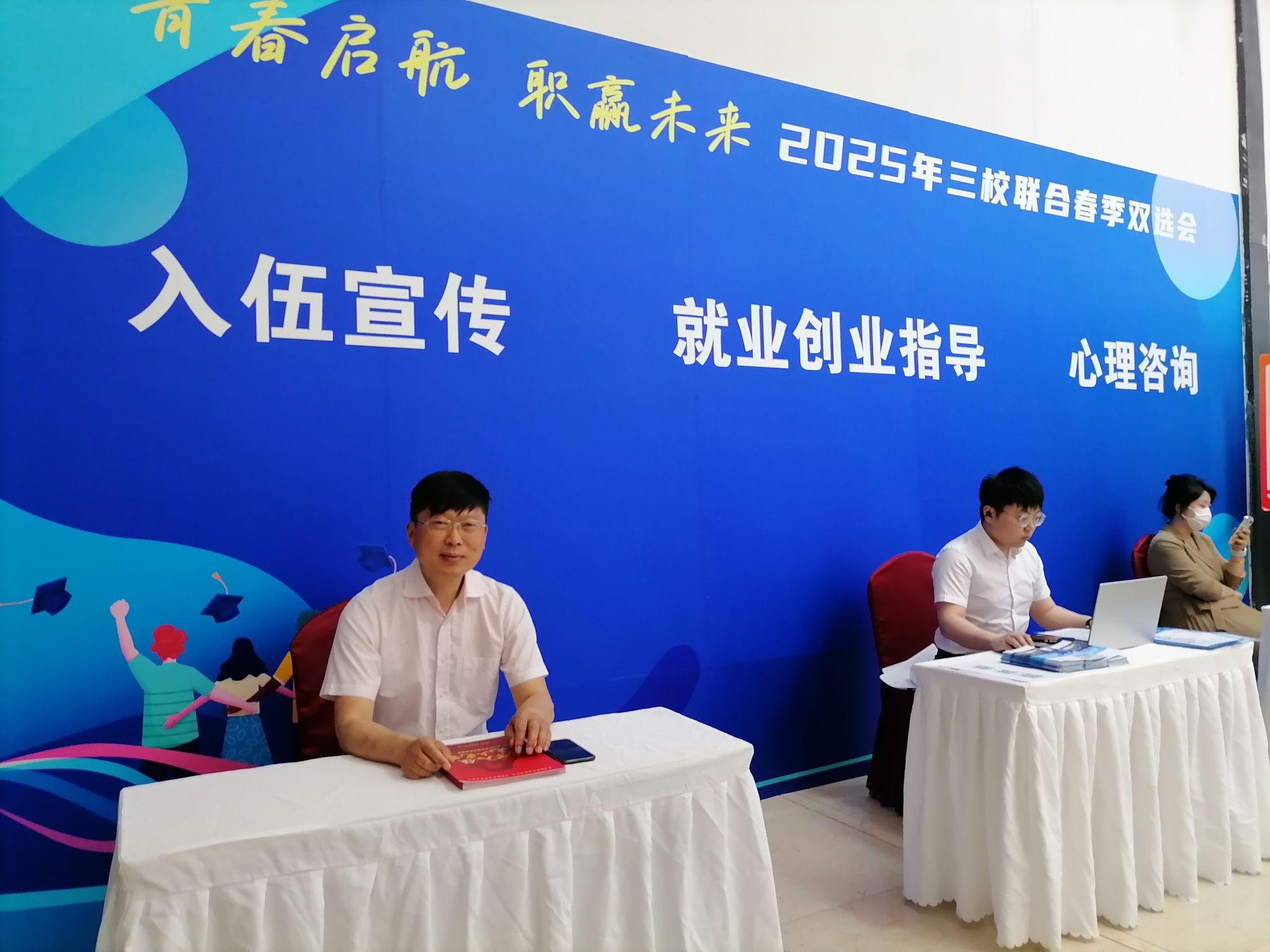 本次双选会创新设立多个特色服务专区,为毕业生求职保驾护航。直播待岗专区借助抖音平台,打破地域限制,将企业招聘信息实时传递给未能到场的学生,拓宽了就业信息传播渠道;指导服务专区更是整合多方资源,不仅安排专业人员为学生解读就业优待政策,助力学生把握政策红利,还专门设置大学生应征入伍宣传板块,由学校学生处罗仲南老师负责,向学生详细介绍入伍条件、优惠政策及报名流程,鼓励有志青年投身国防事业。指导服务专区还提供心理咨询服务和就业创业指导,帮助学生缓解求职压力,提升就业竞争力和创业能力。
