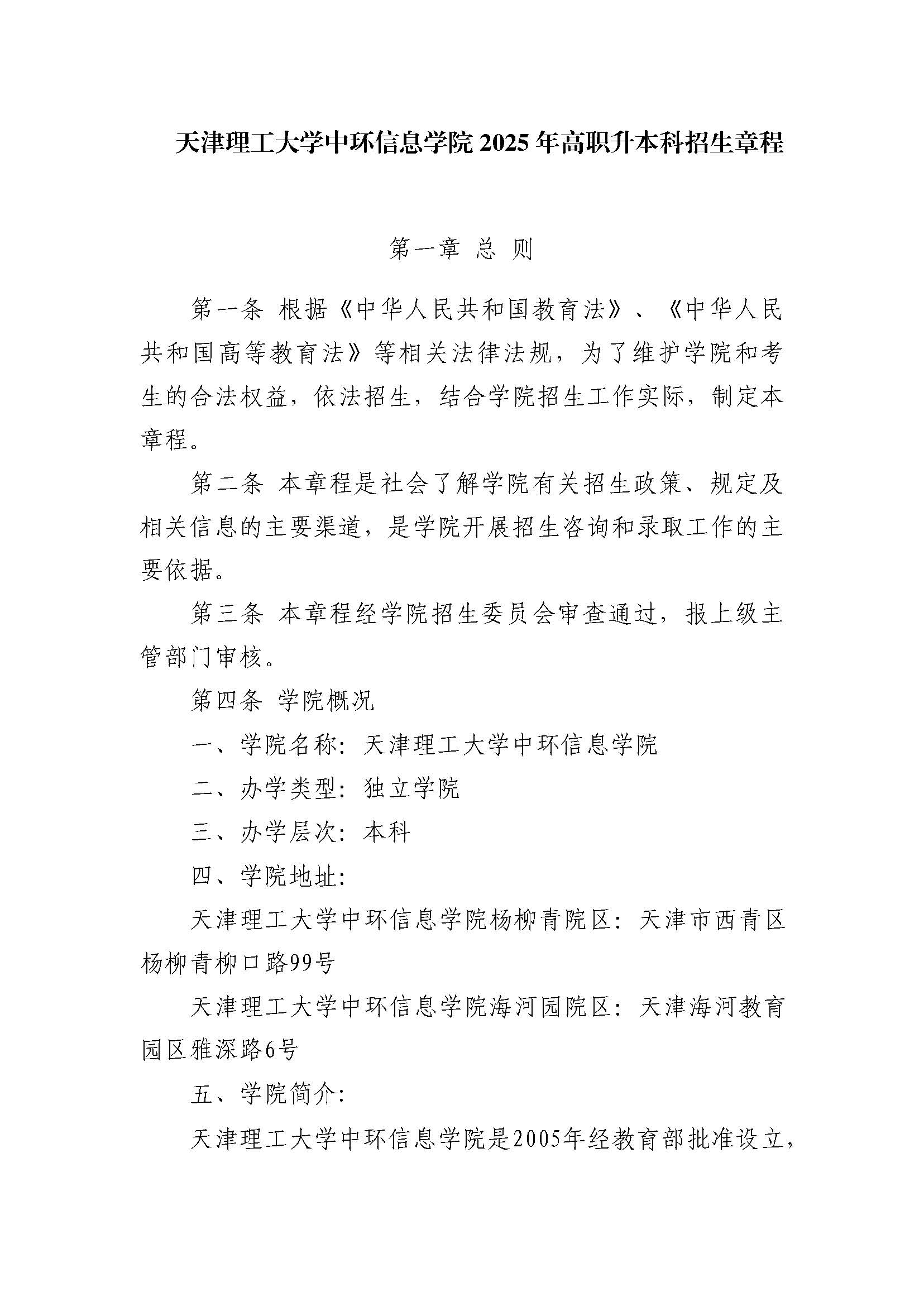 天津理工大学中环信息学院2025年高职升本科招生章程