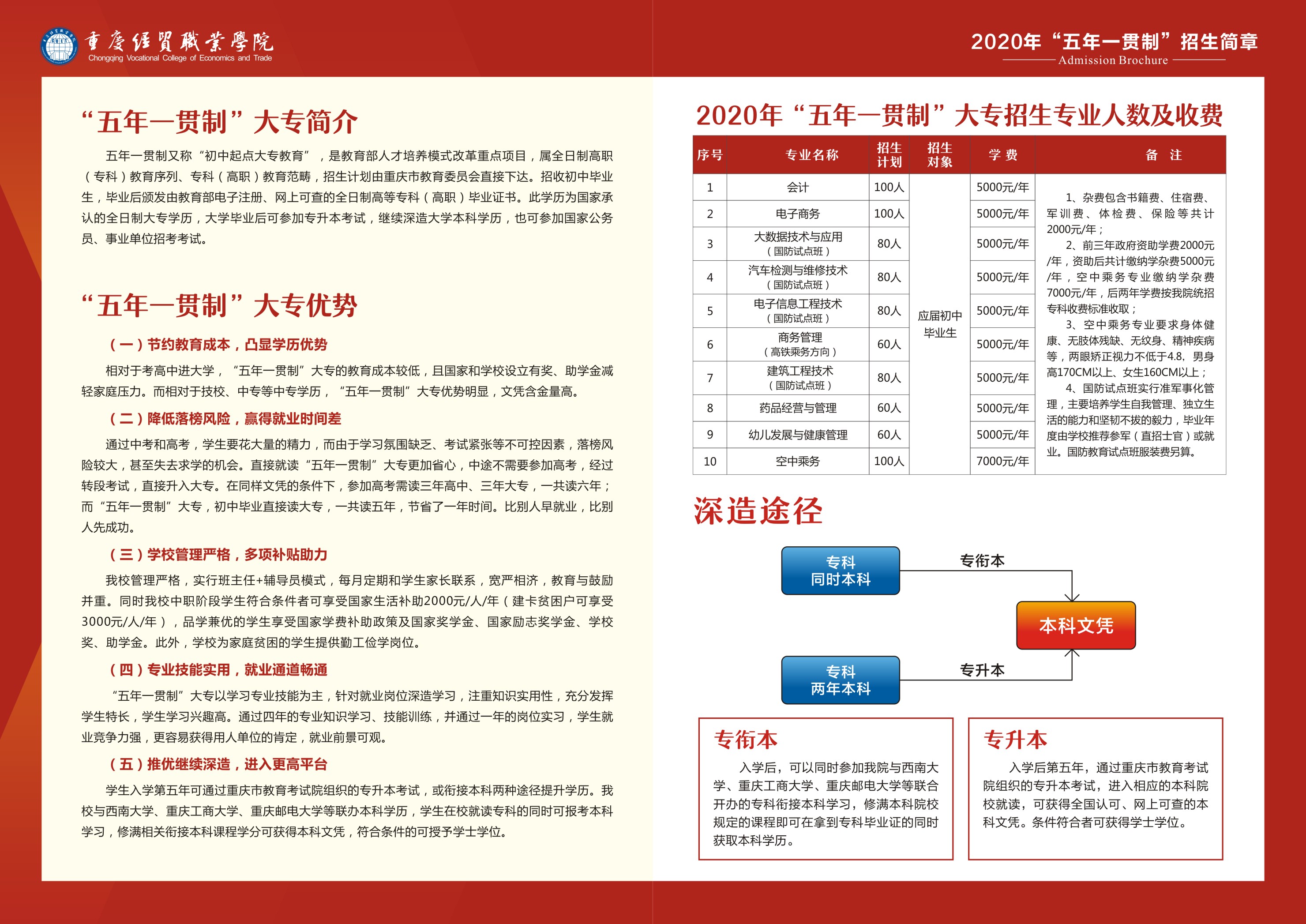 重庆经贸职业学院2020年“五年一贯制”大专招生简章