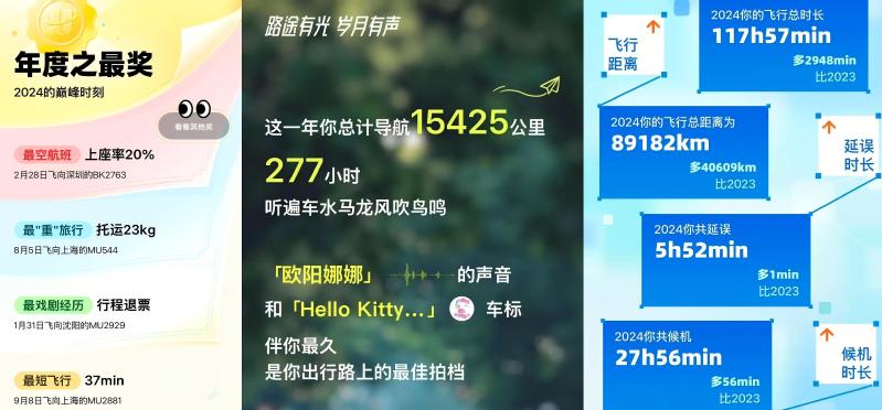 高德地图为于建平的2024年做了一份详细的总结:在这一年里,他出行323天,如同一位不知疲倦的行者,穿梭于世界各地;去过73个城市,领略了不同地域的风土人情;导航449次,搜索422次,在探索未知的道路上不断前行;历程15425公里,飞行里程89182公里,飞行时长117小时57分钟,出行总时长123小时27分钟,候机时长27小时56分钟。他的这份忙碌与坚持,被高德地图封为“铁锭王”。这一称号,亦是他拼搏人生的最好见证。