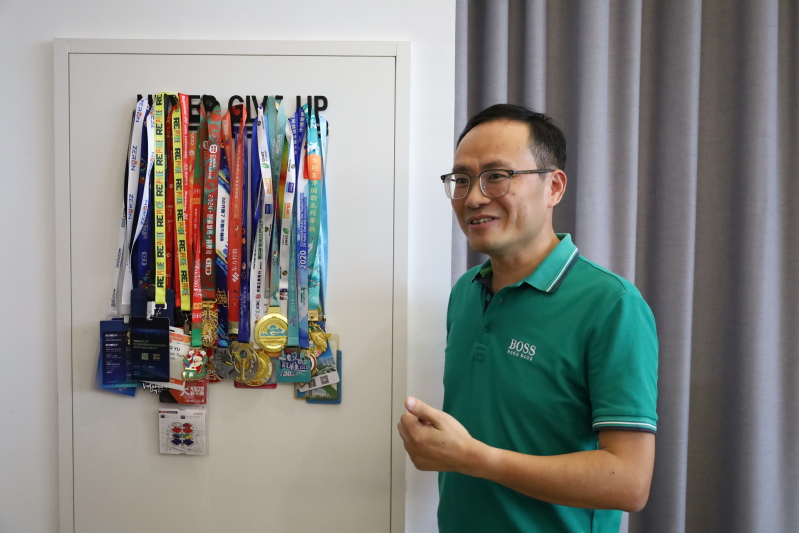 “马拉松”则是他与“运动”的另一种跨越山海的约定。走进他的办公室,一面用“马拉松”奖牌堆砌起来的荣誉墙熠熠生辉。有的奖牌如齿轮,镌刻着工业城市的机械韵律,有的则镶嵌着异域风情的图腾。