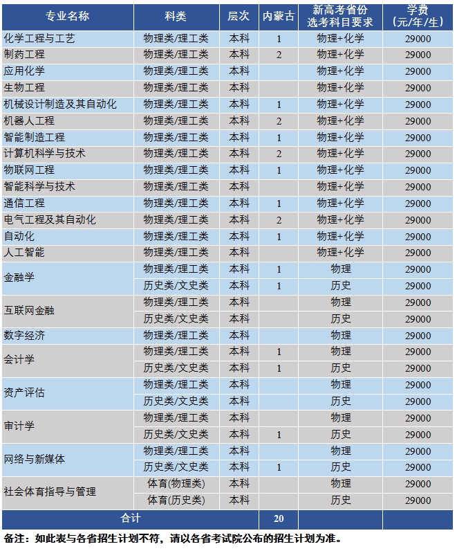 沈阳科技学院2025年内蒙古自治区分专业招生计划