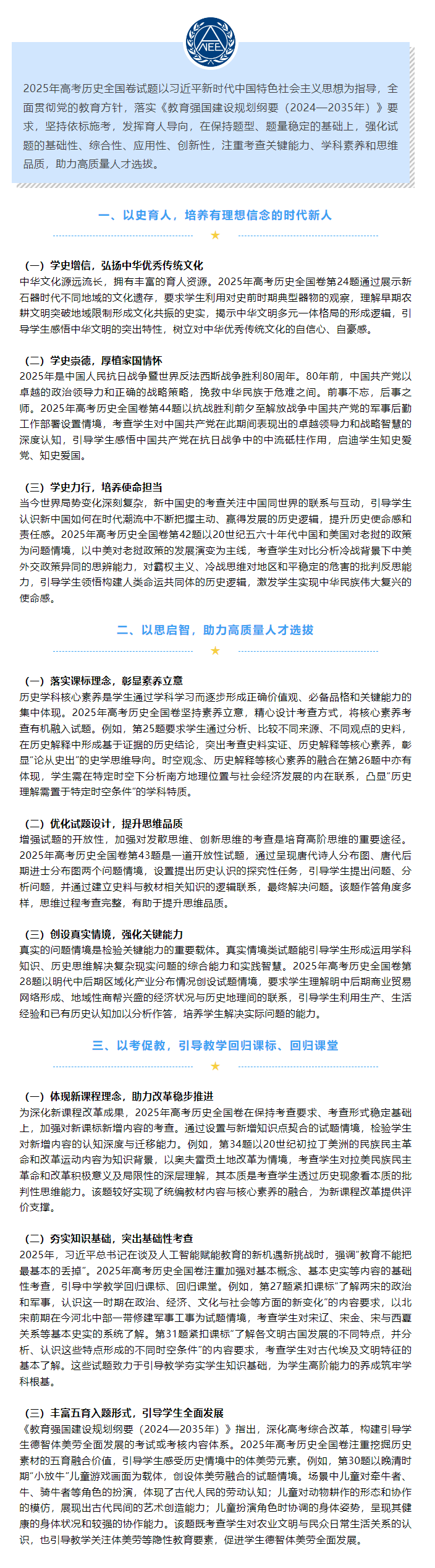 教育部教育考试院:2025年高考历史全国卷试题评析
