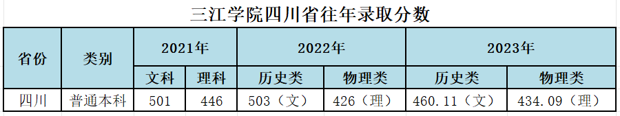 三江学院四川省往年录取分数和2024年招生计划