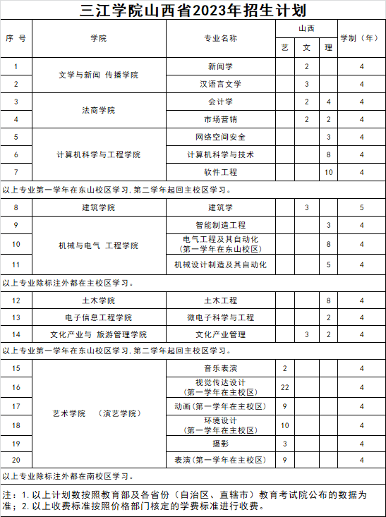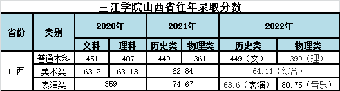 三江学院山西省往年录取分数和2023年招生计划