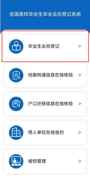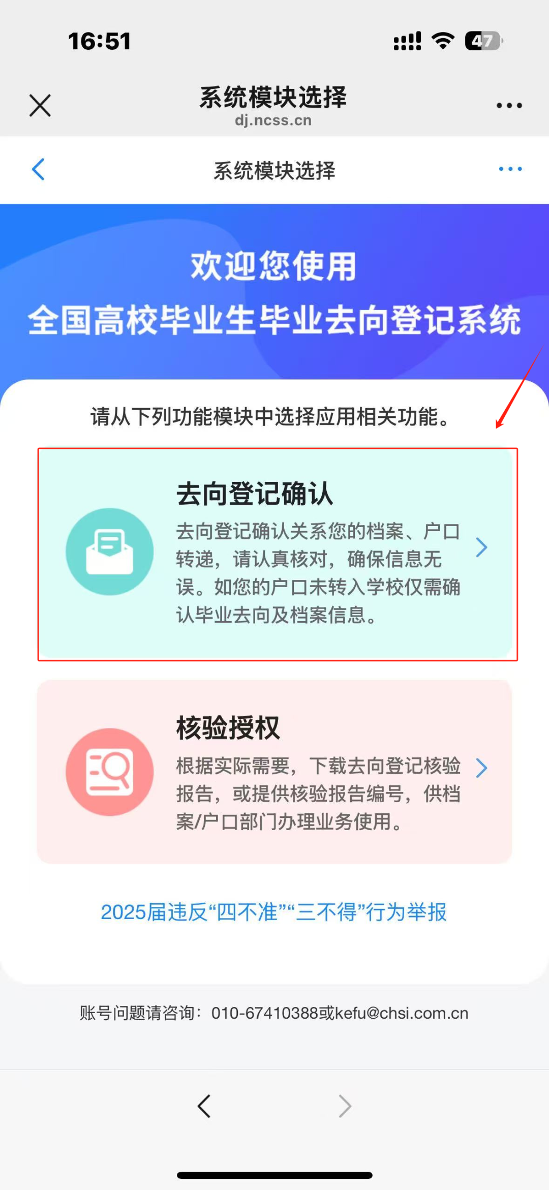 第三步:选择“去向登记确认”,核对,确认毕业去向信息、档案转递信息