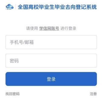 登录方式二:通过手机端搜索登记系统网址 dj.ncss.cn,点击“毕业生去向登记”,使用学信网账号登录。