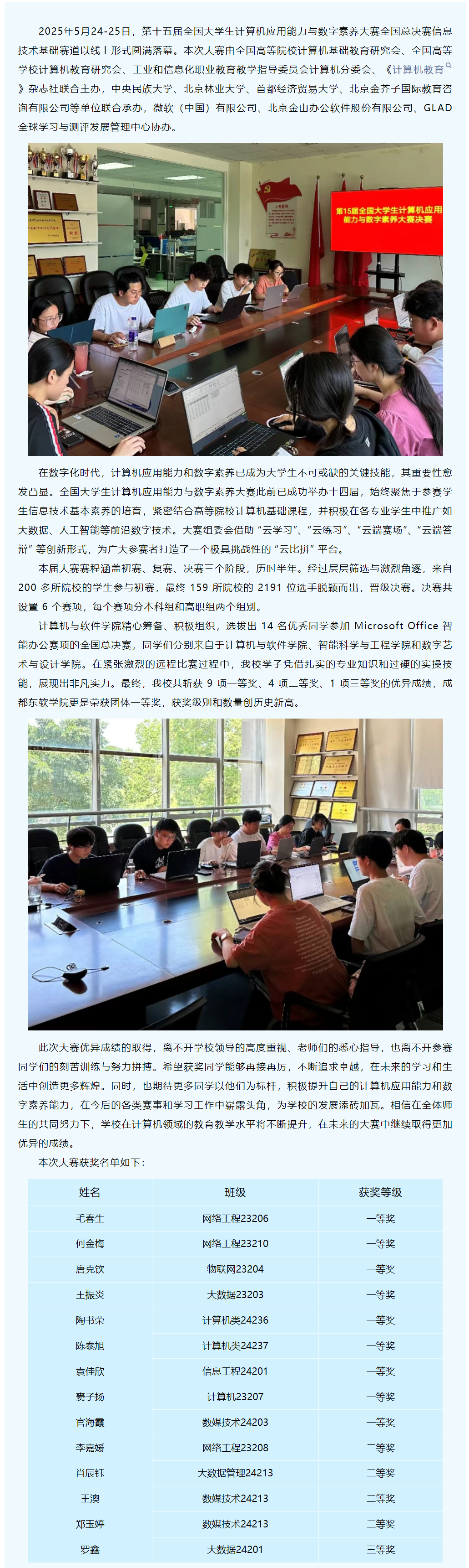 我校学子在第十五届全国大学生计算机应用能力与数字素养大赛中再创辉煌