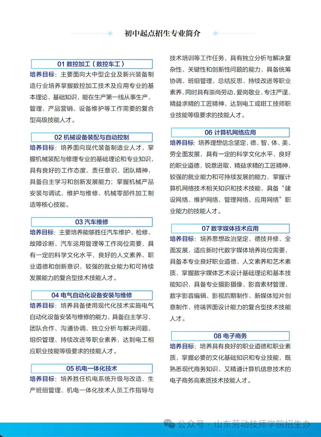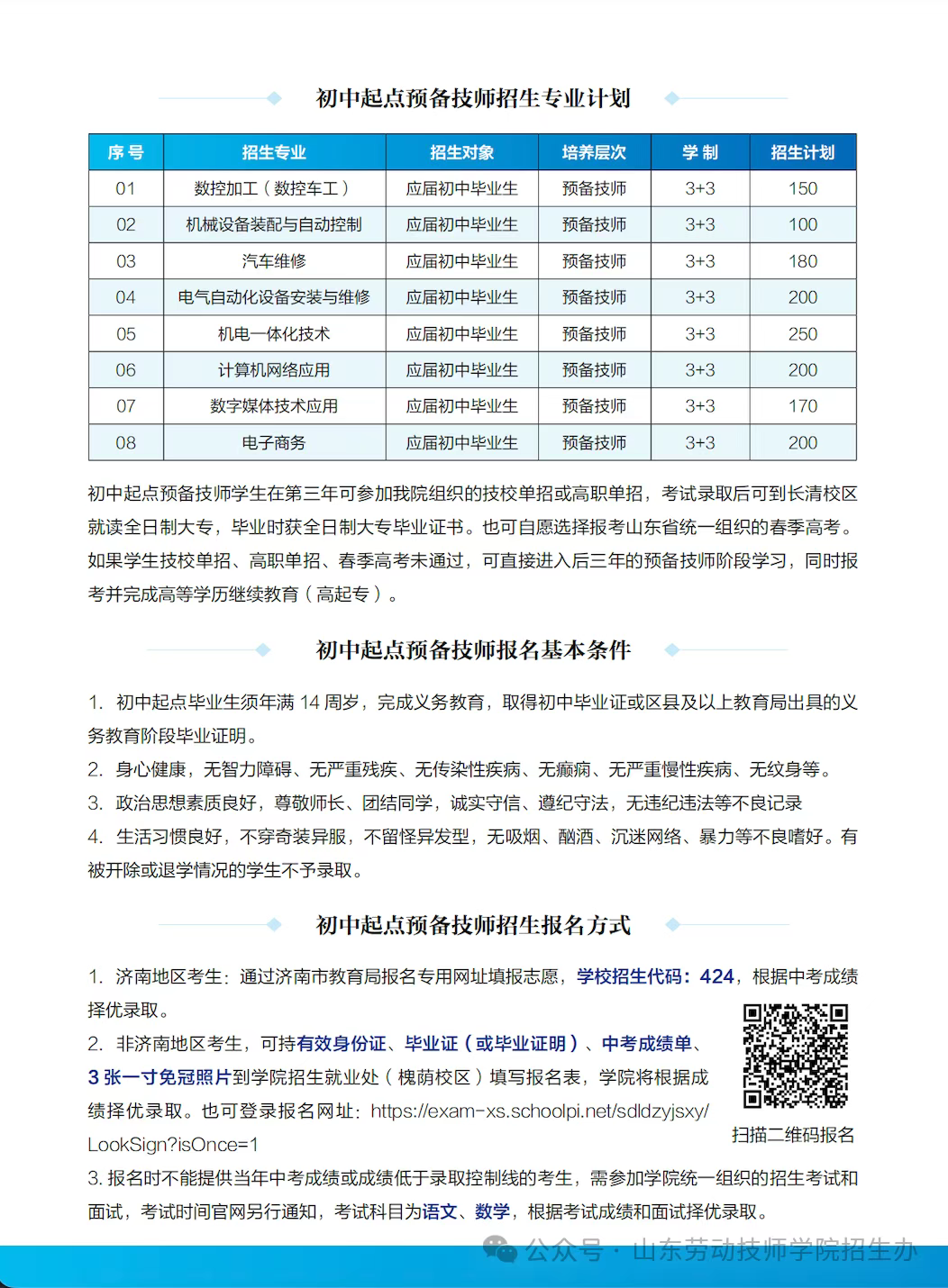 山东劳动职业技术学院2025年初中起点预备技师招生简章