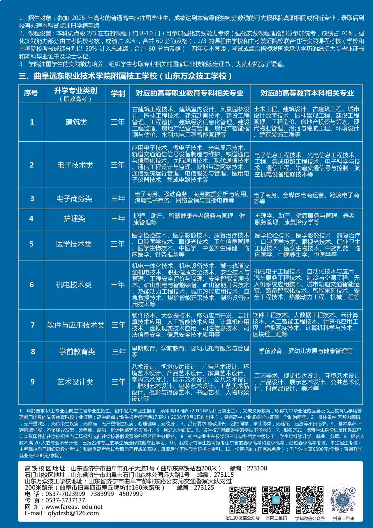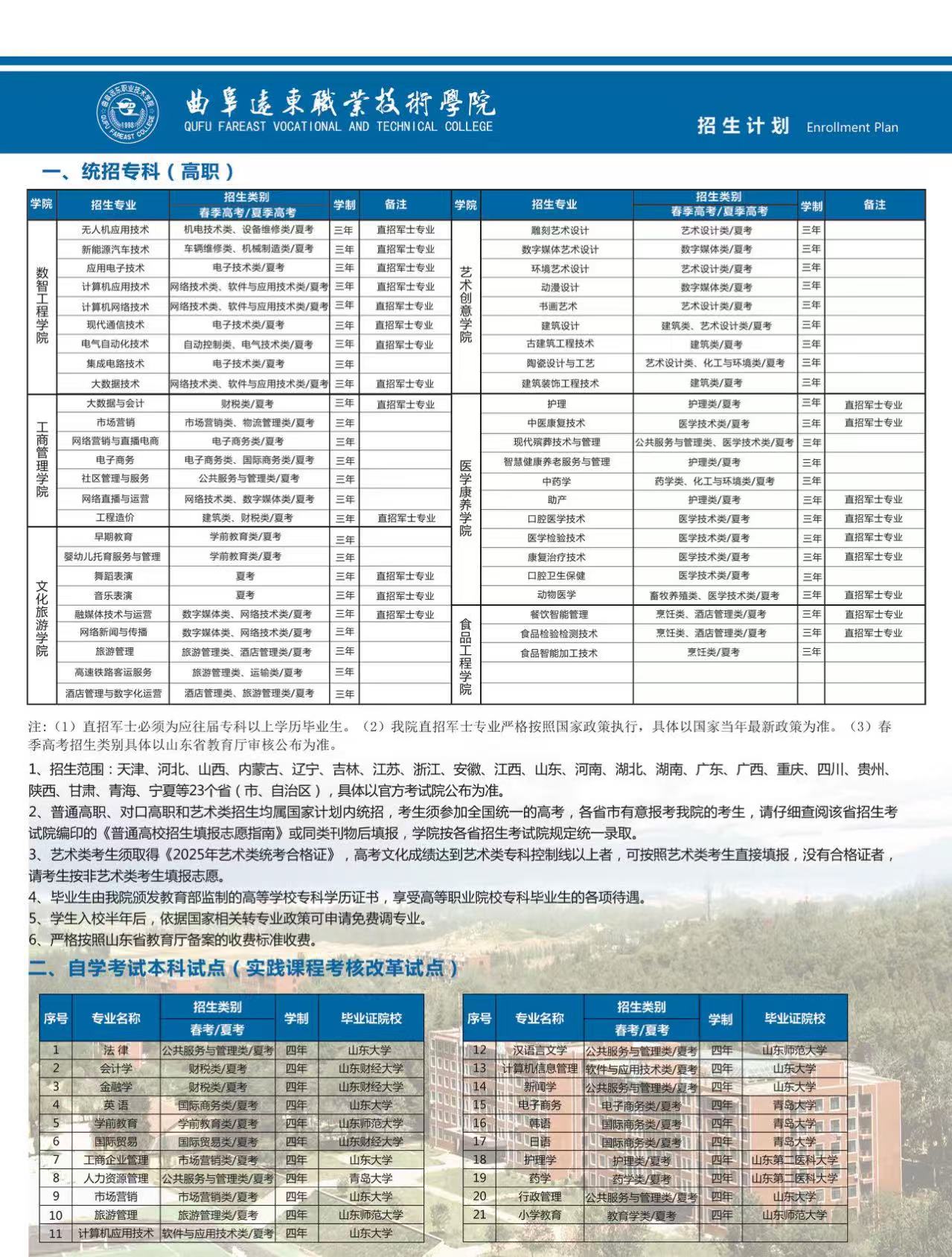 曲阜远东职业技术学院2025年三年制大专招生简章