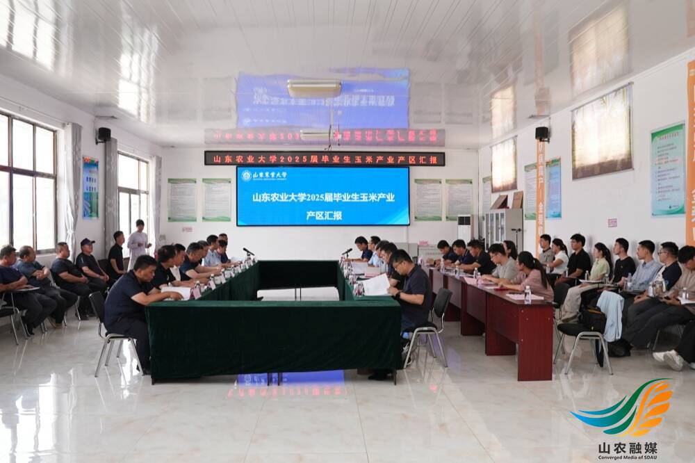 山农融媒6月10日讯6月8日,学校2025年应届毕业生玉米产业“产区汇报”在山东农业大学玉米科技小院德州市齐河县胡官屯镇金穗合作社举行,拉开了学校2025届毕业生产区毕业汇报的帷幕。
