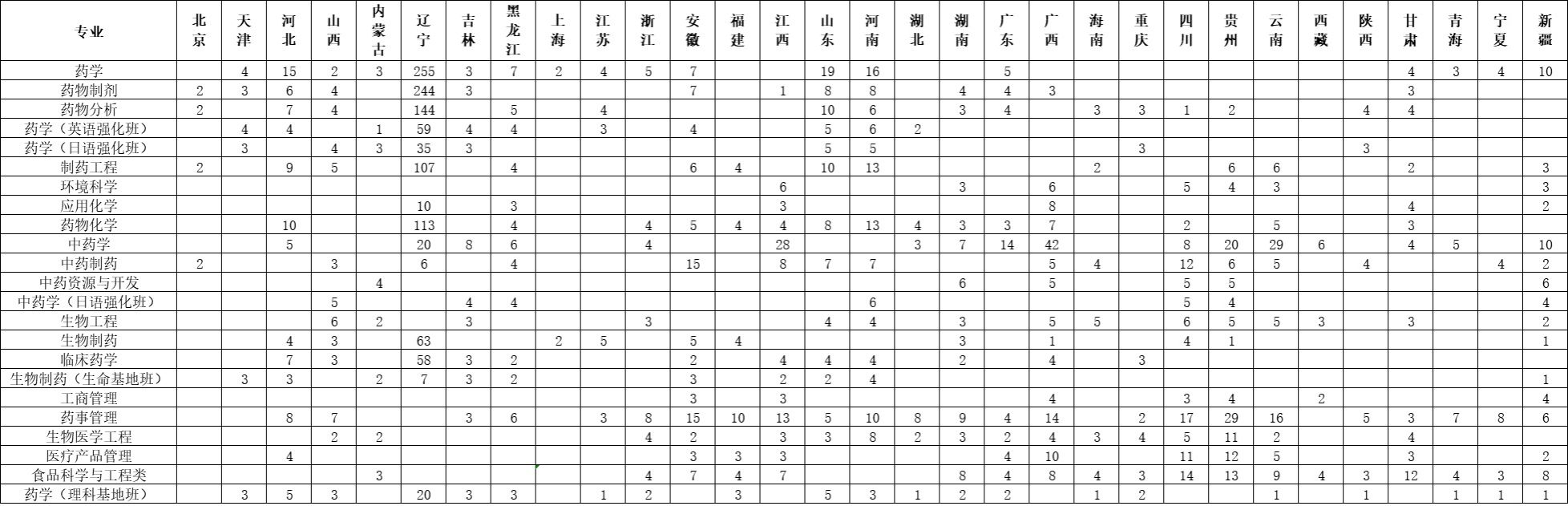 沈阳药科大学2025年招生计划