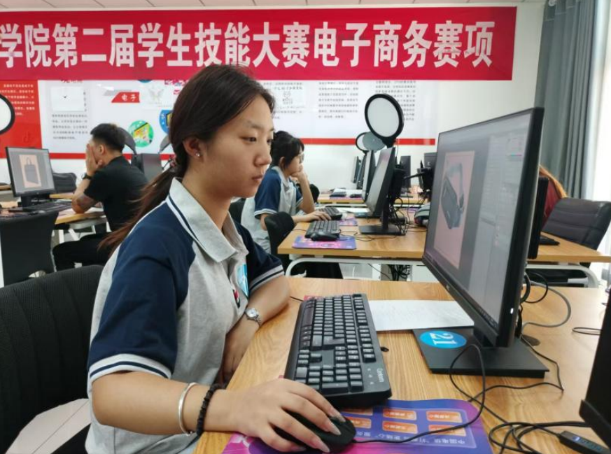 比赛中还遇到了突发状况:数据突然出现问题,原本的节奏全被打乱了。那一刻我们小组紧张得手心冒汗,但很快冷静下来,按照备赛时准备的预案,用笔记本临时记录数据,和队友默契配合完成了后续操作。这让我懂得,做物流不仅要技术过硬,更得学会随机应变。 在电子商务赛项中,我承担了小组PS美工部分操作。限时创作的压力让我特别紧张,但平时积累的灵感帮了大忙——我把日常购物的体验、流行趋势,甚至社会热点都融入了设计,比赛让我学会从更多元的视角解决问题。 两场比赛下来,我收获的不只是智慧物流和电商视觉营销设计的技能,更重要的是团队协作的默契和应对压力的能力,还有持续学习的心态。我明白了电商行业的生命力在于创新,只有像空杯一样不断吸收新知识,才能在快速变化的市场里站稳脚跟。未来,我会带着这些收获,在数字经济的浪潮里继续探索!