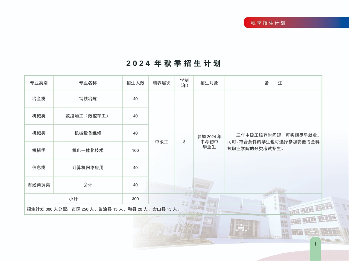 安徽马钢技师学院2024年秋季招生简章