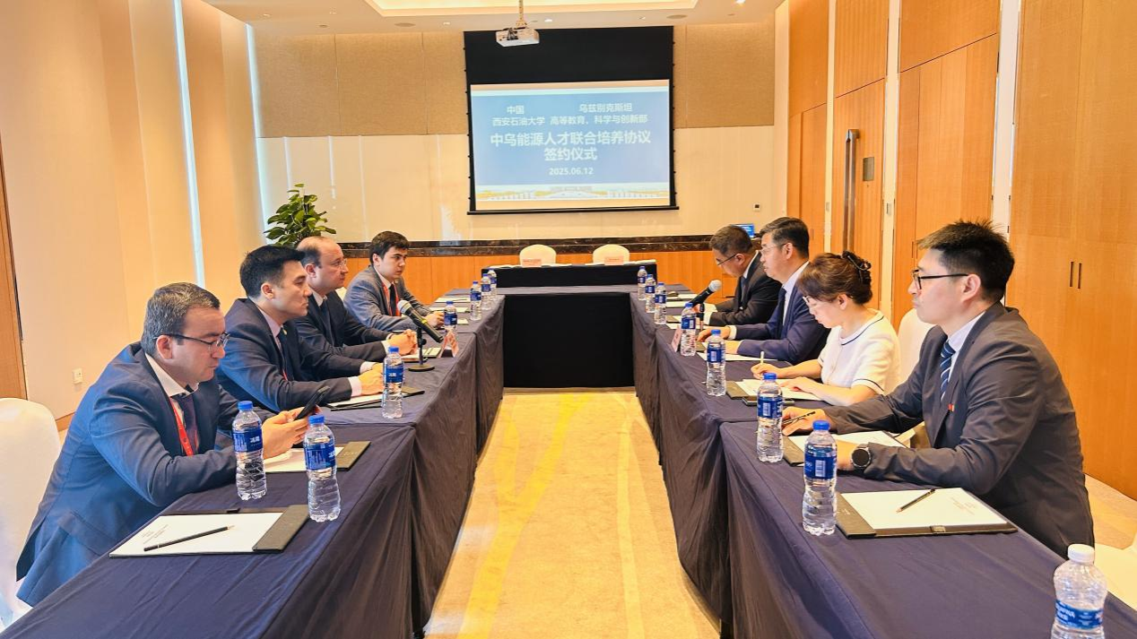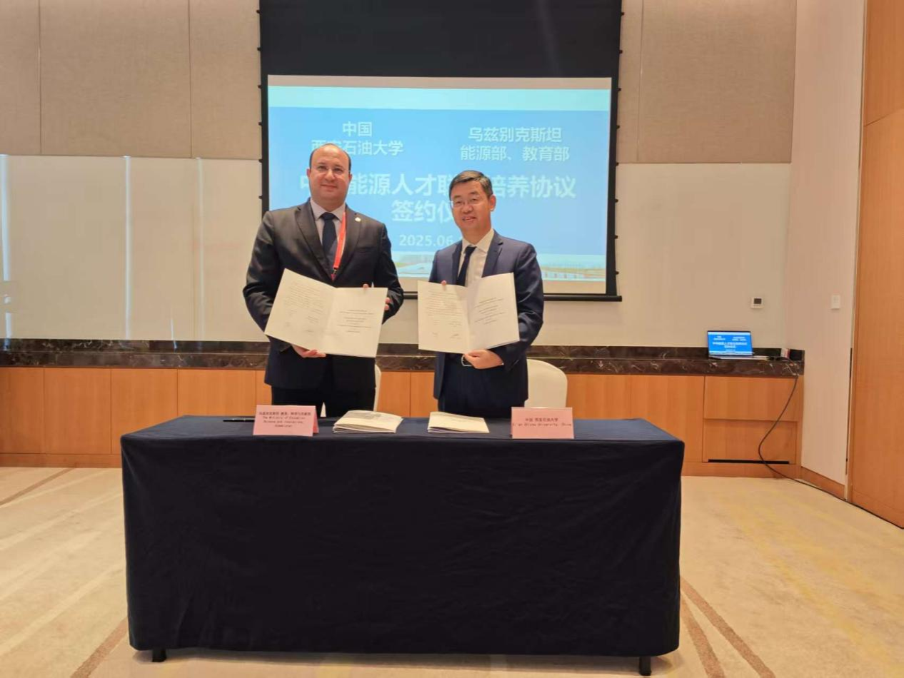 座谈会后,双方举行中乌能源人才联合培养协议签署仪式。王进富与奥塔别克·马卡莫夫分别签署学校与乌兹别克斯坦教育部中乌能源人才联合培养协议,及学校与乌兹别克斯坦能源部、教育部中乌能源人才联合培养协议,乌方教育部、能源部将共同支持学校与乌方开展能源领域人才培养工作。