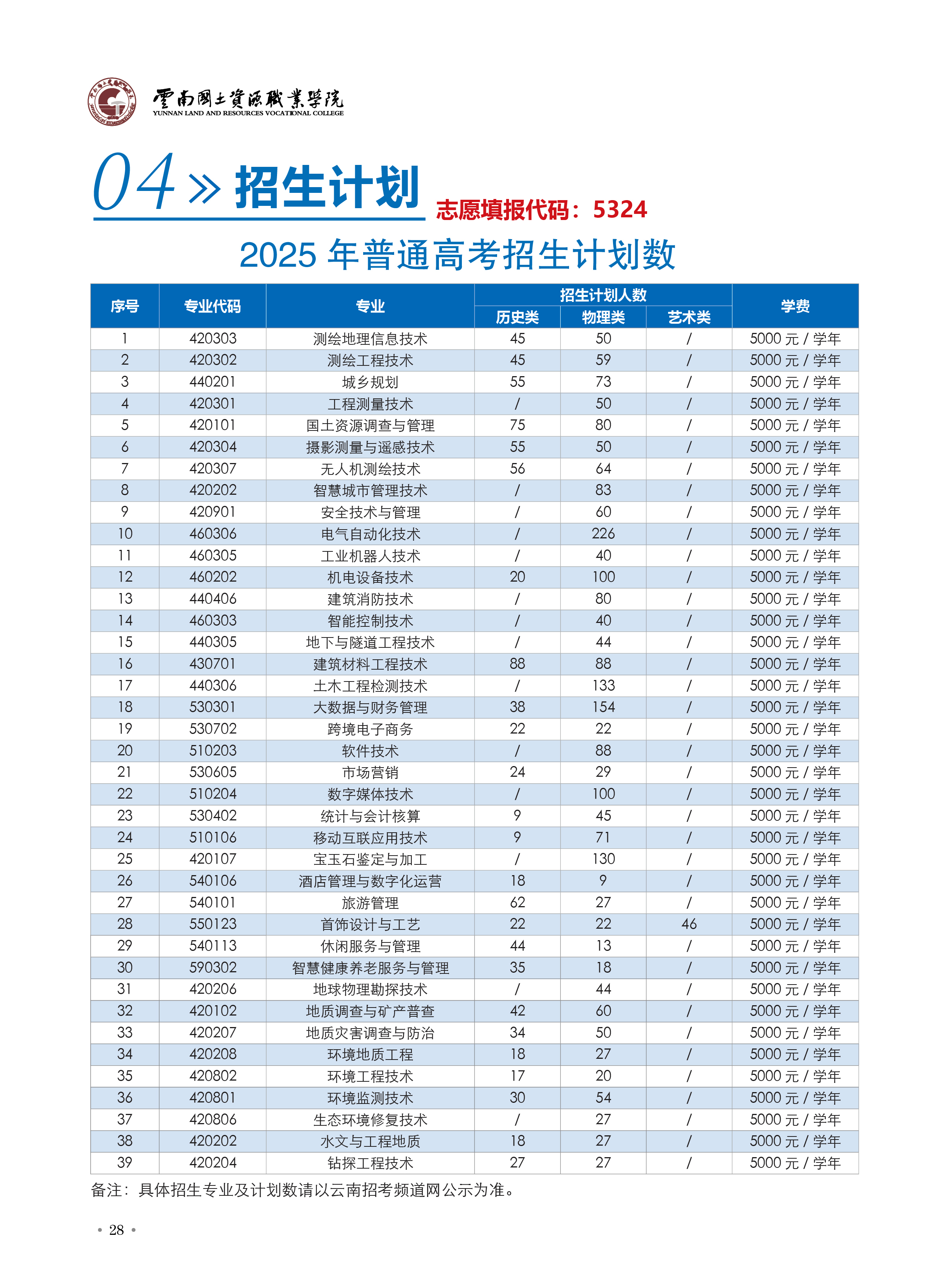 云南国土资源职业学院2025年三年制(普通高考)招生简章