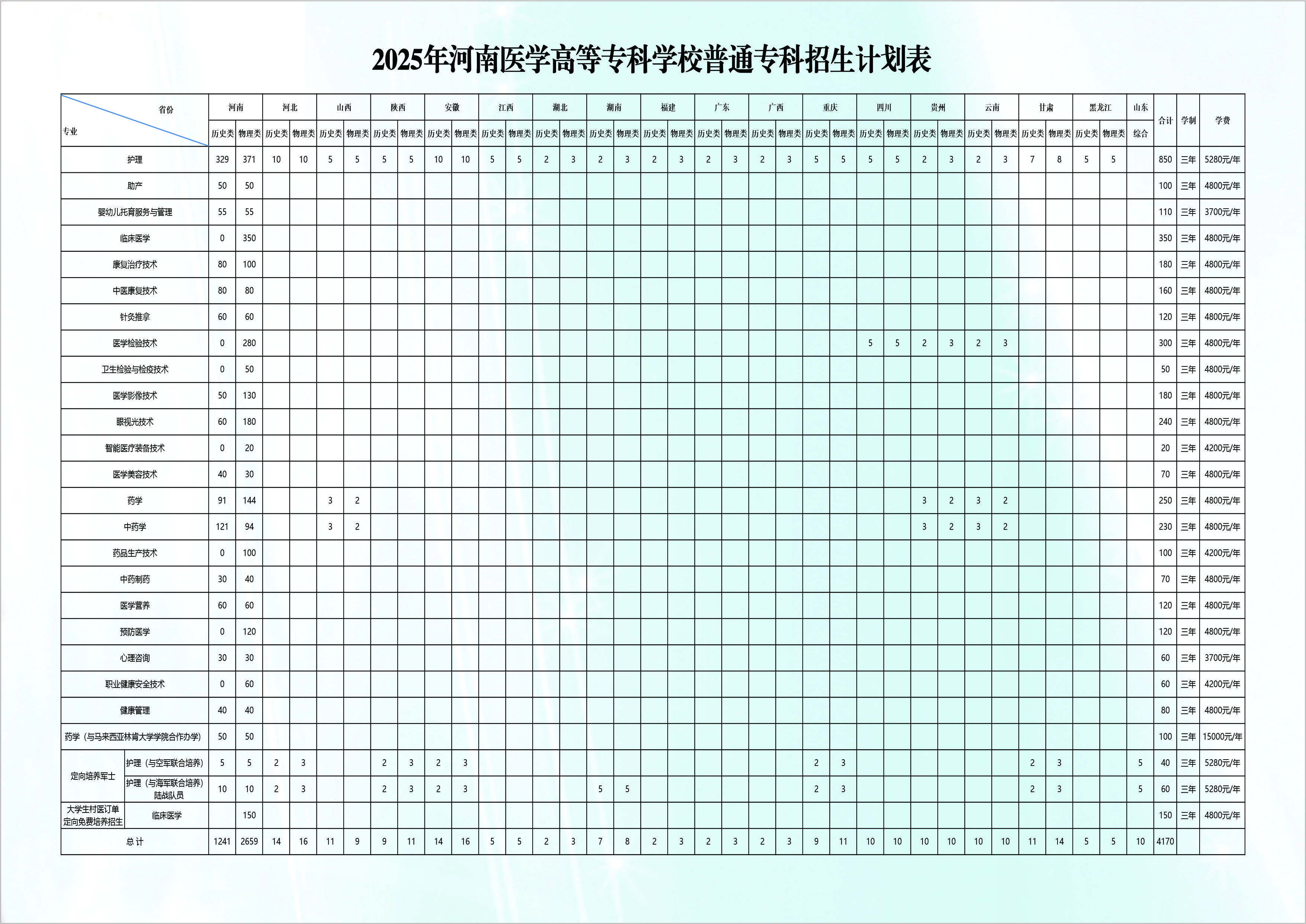2025年普通专科招生计划
