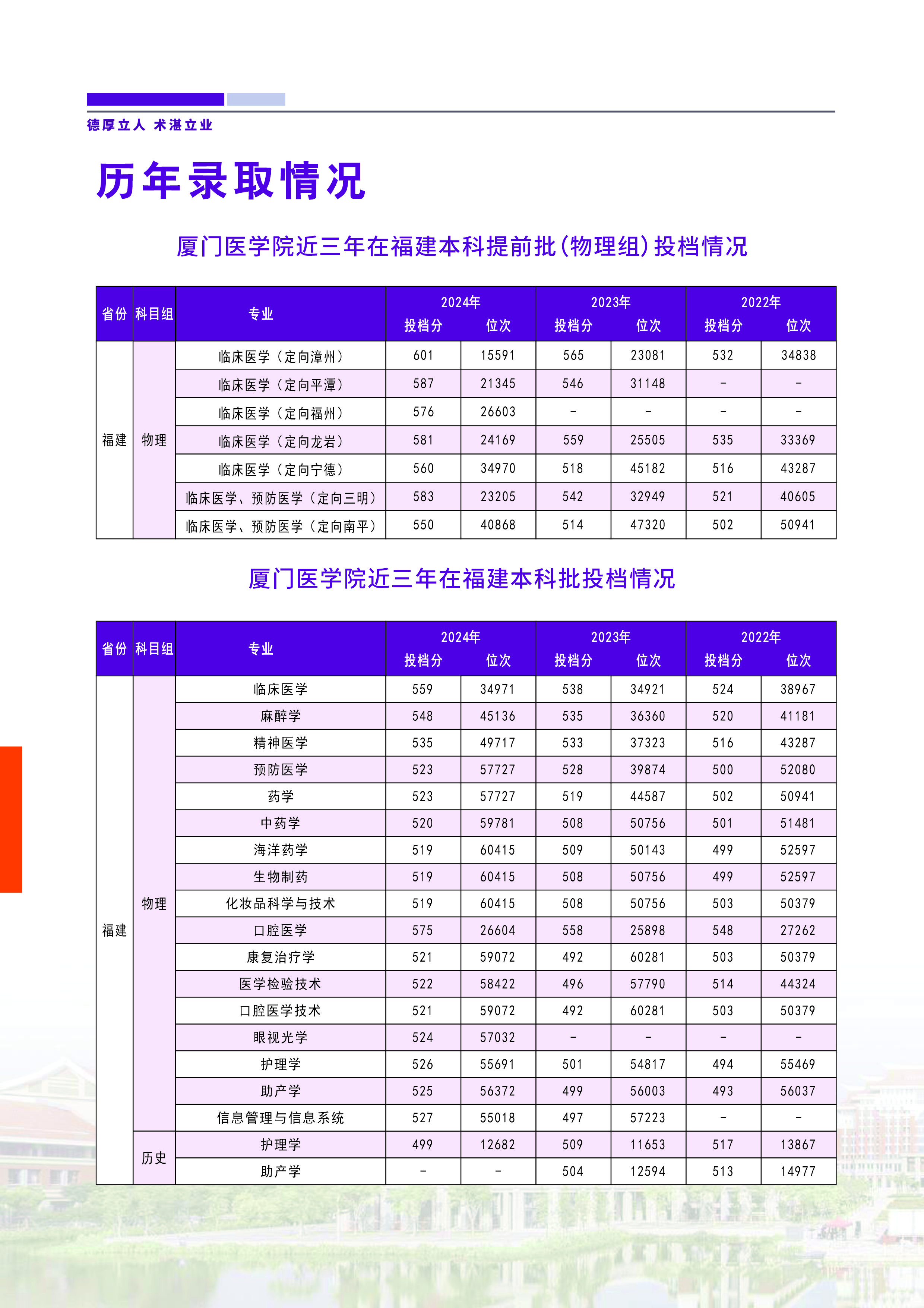 最新消息|厦门医学院近三年在福建省本科投档情况