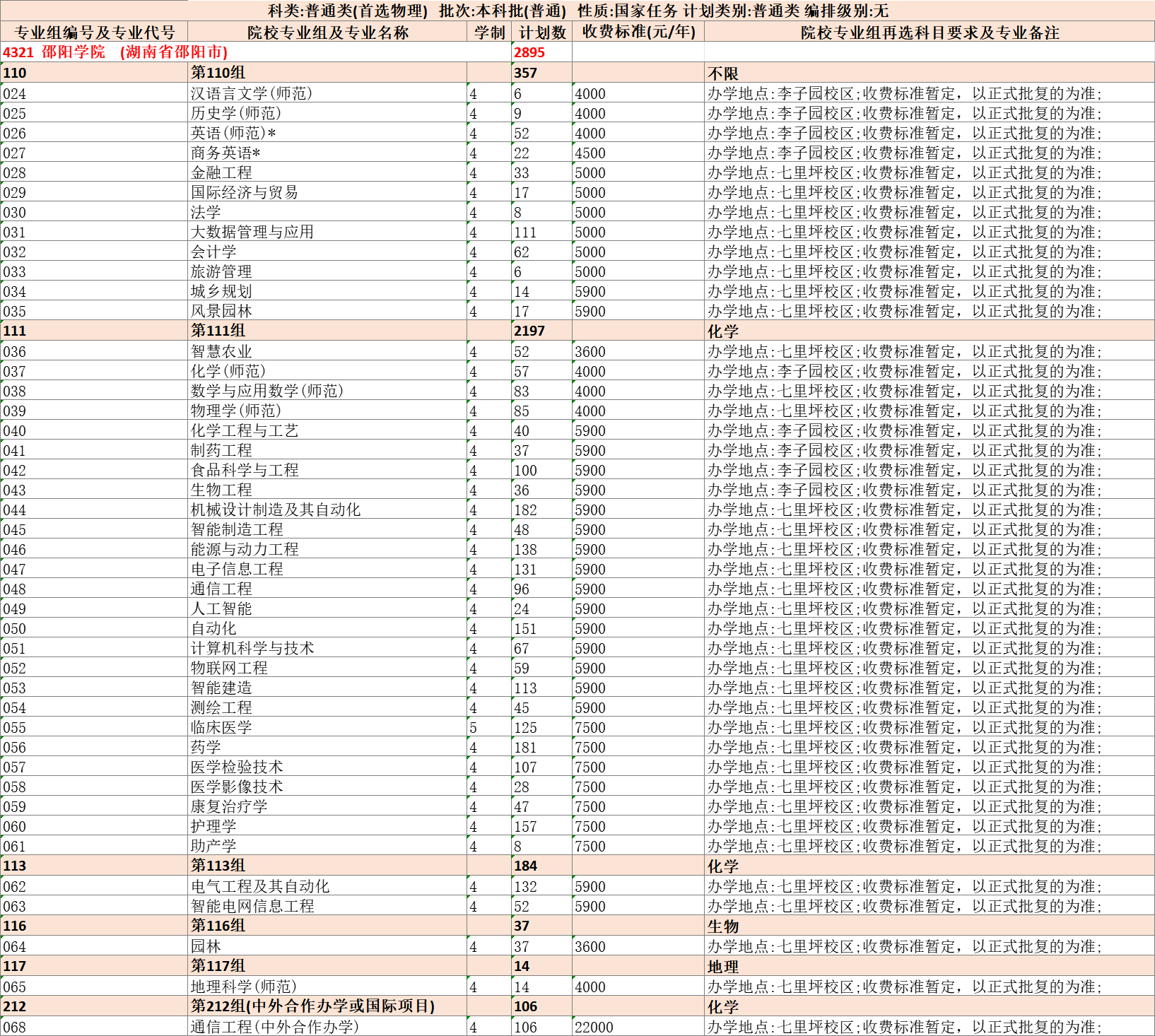 邵阳学院2025年在湘招生专业分组(普通类专业计划-物理)
