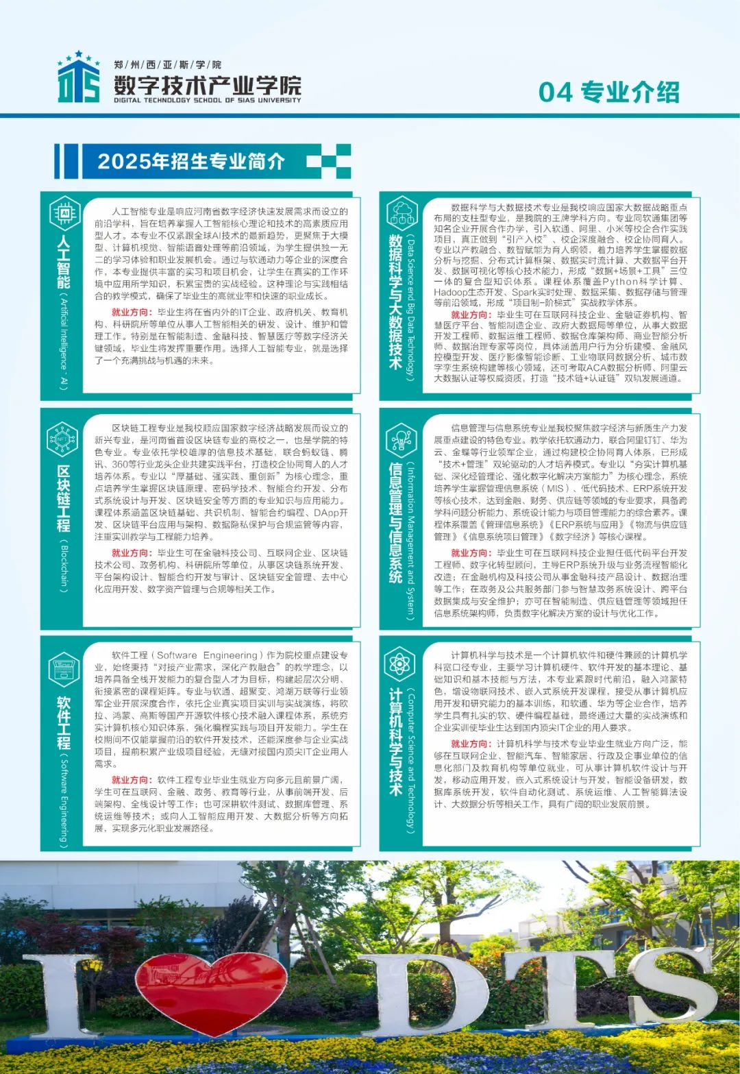 2025年数字技术产业学院招生计划来源 | 郑州西亚斯学院数字技术产业学院。(声明:“郑州西亚斯学院招生办公室”微信公众号刊载此文,是出于传递更多信息之目的。若有来源标注错误或侵犯了您的合法权益,请及时与我们联系,我们将及时更正、删除或依法处理。)