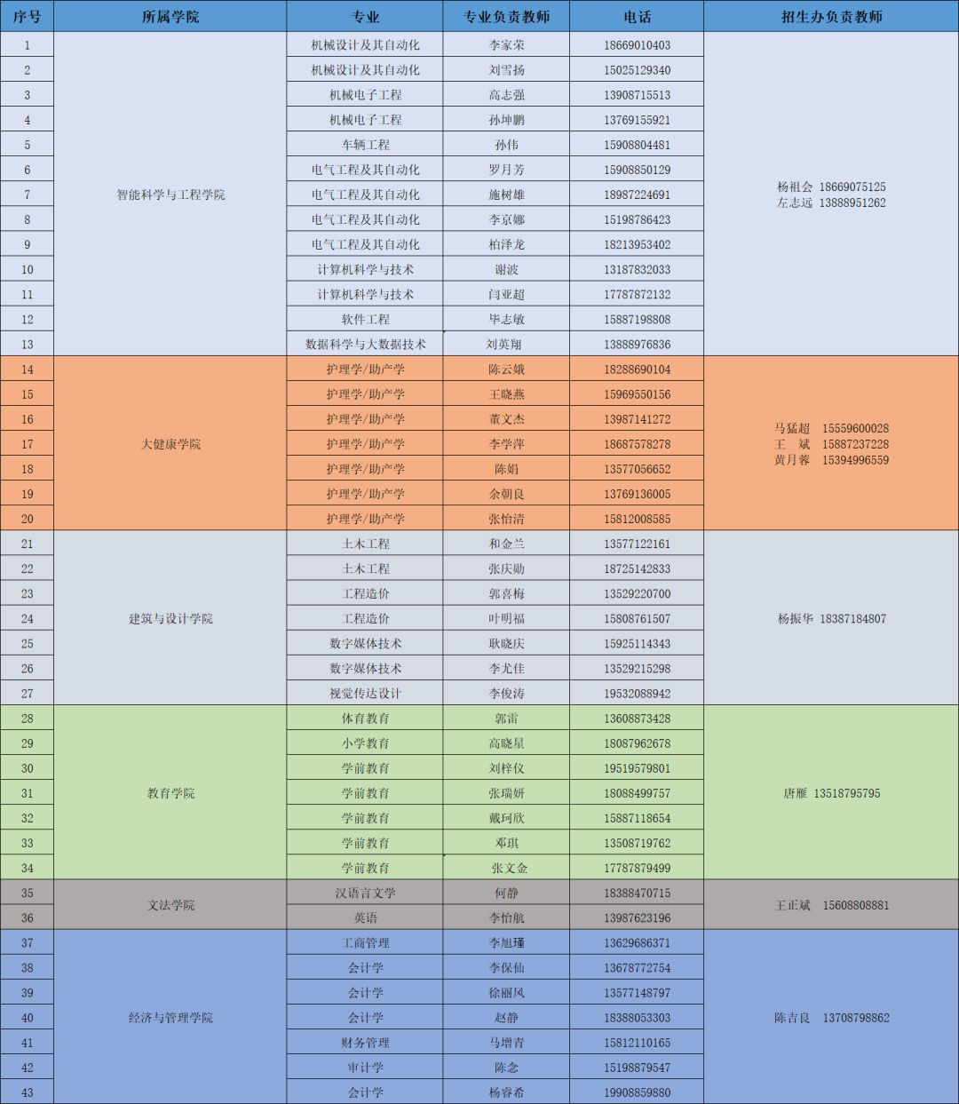 同学们有任何疑问,都可以联系下列表格中的老师进行详细咨询。